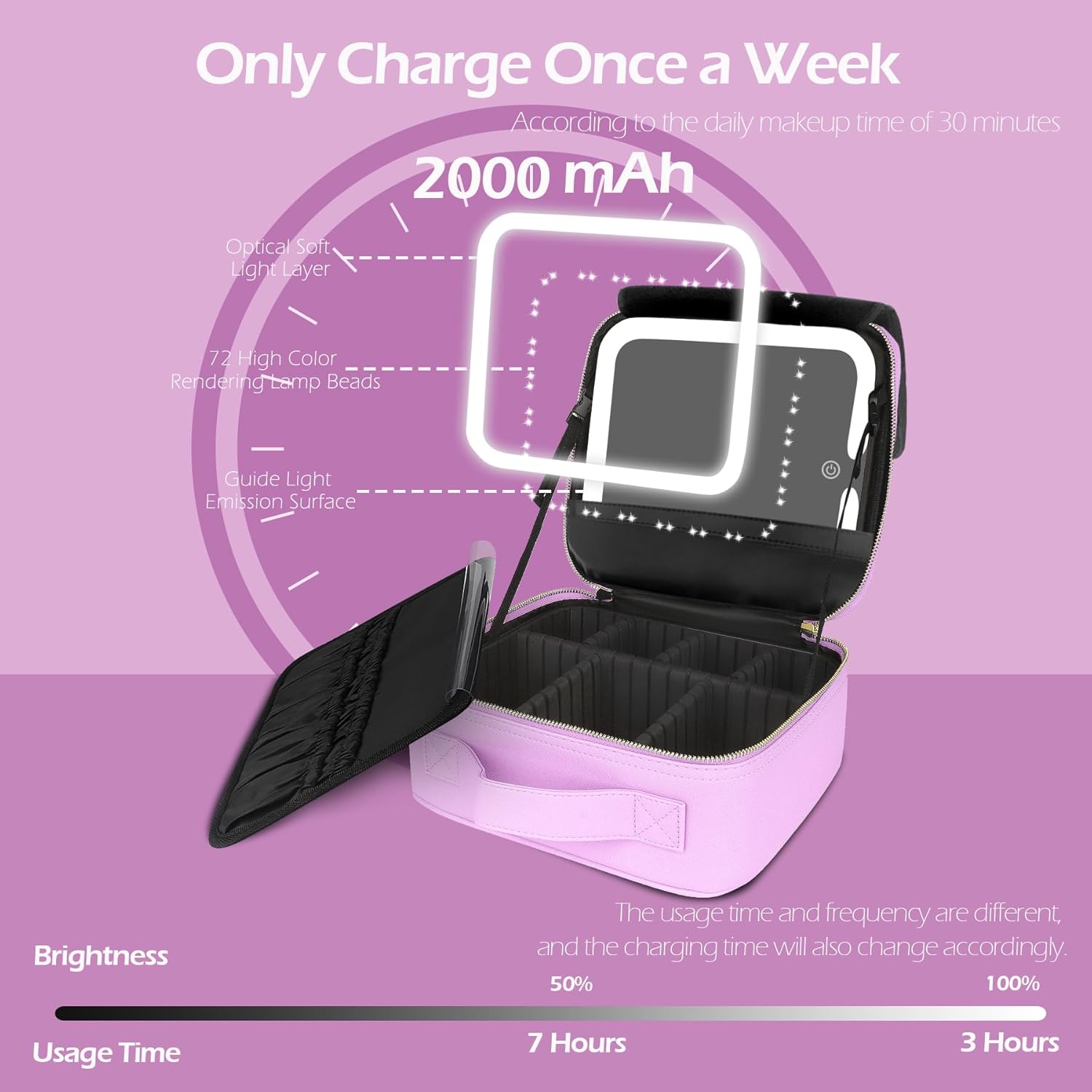 MOMIRA Travel Makeup Bag Cosmetic Bag Makeup Organizer Bag with Lighted Mirror, Adjustable Brightness in 3 Color Scenarios, Waterproof Makeup Train Case, Gift for Women - Purple