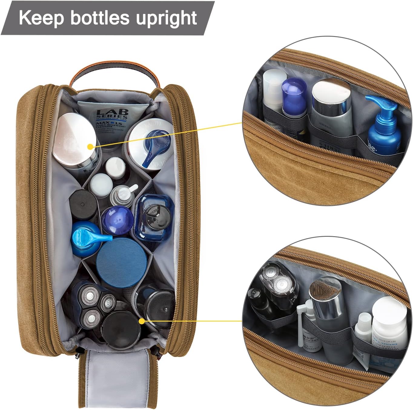 BAGSMART Toiletry Bag for Men, Canvas Travel Toiletry Organizer Dopp Kit Water-resistant Shaving Bag for Toiletries Accessories,Khaki-Large