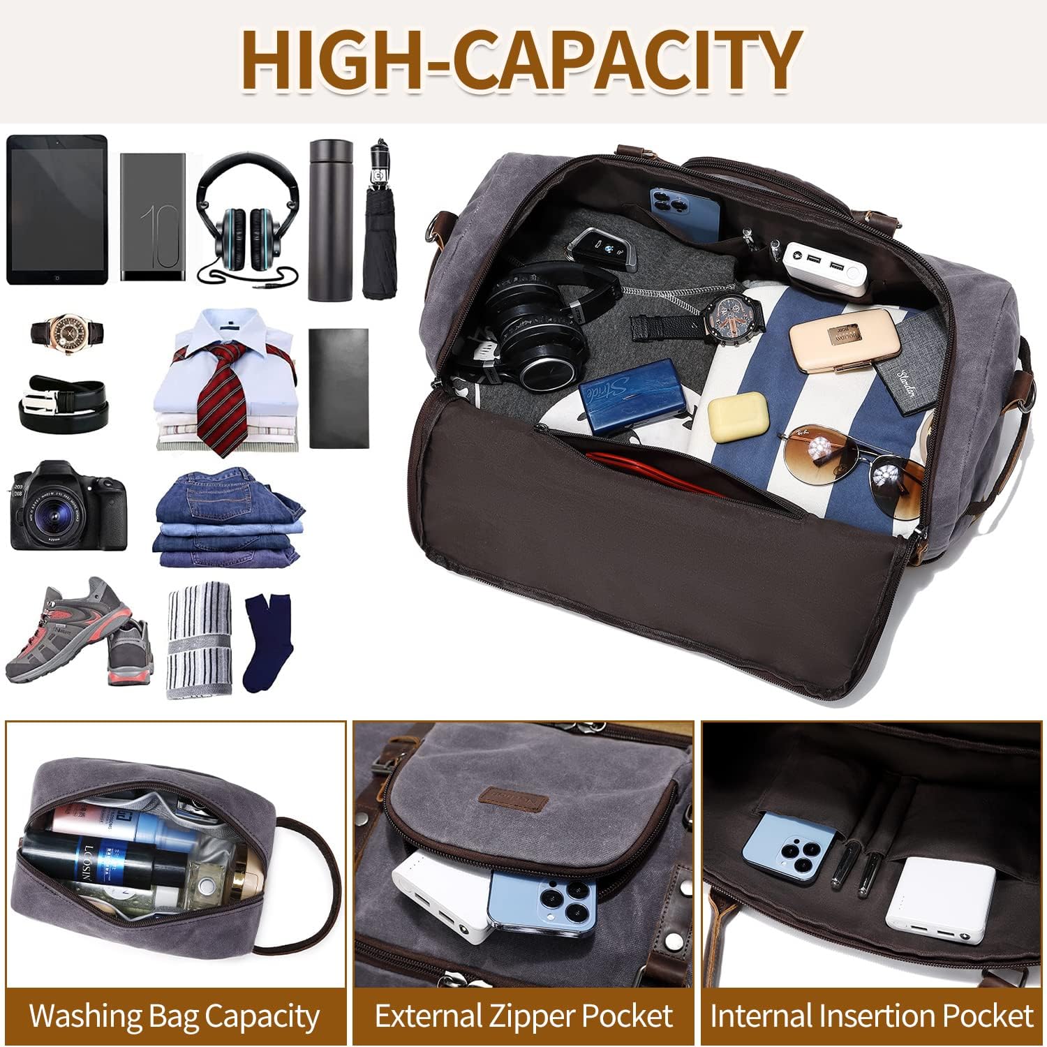 - Occassion: This weekender bag is perfect for a weekend trip or travel, great as a carry on bag, overnight bag, duffle bag. Great travel gift for men.