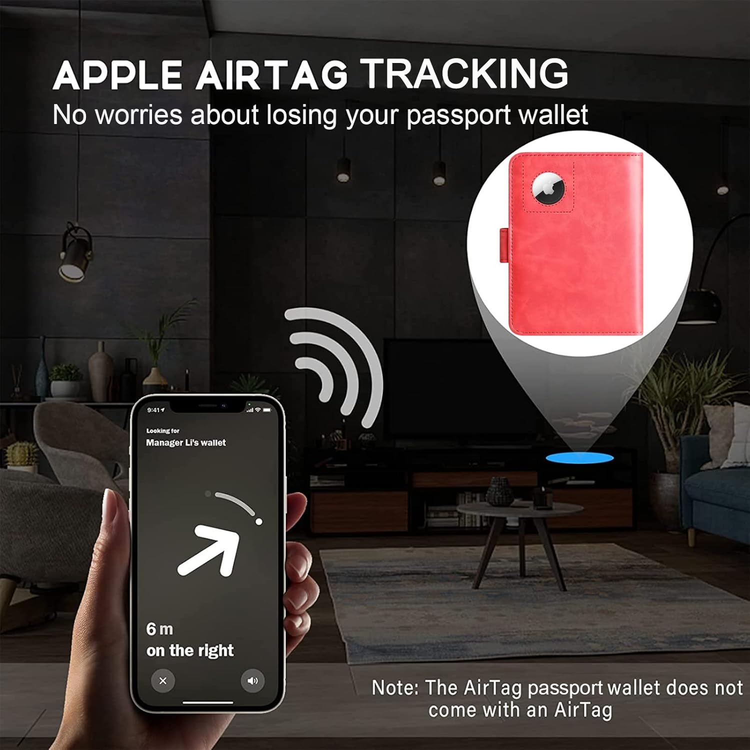 - PASSPORT AND AIRTAG HOLDER COMBO - The built-in holder for Apple Air Tag combine passport wallet and AirTag ideally to make sure you never lose your passport wallet again. Misplaced or lost your passport wallet? Keep track of and see where you last had it alongside friends and devices in the Find My app. The AirTag passport wallet does not come with an Airtag.