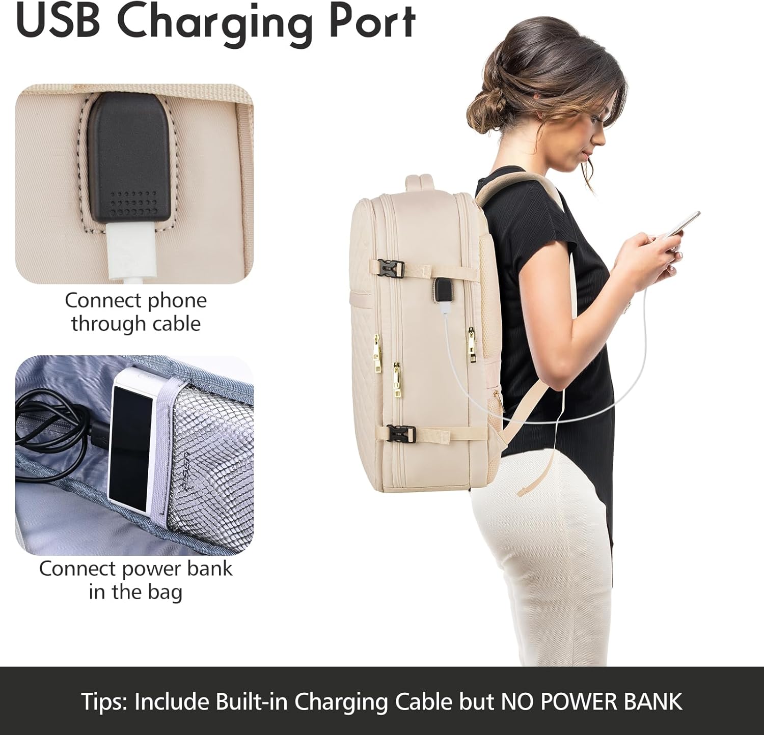 MOMUVO Large Travel Backpack Women, Flight Approved Carry On Backpack, Water Resistant Anti-Theft Large Casual Daypack Fit 17 Inch Laptop with USB Charging Port, Beige