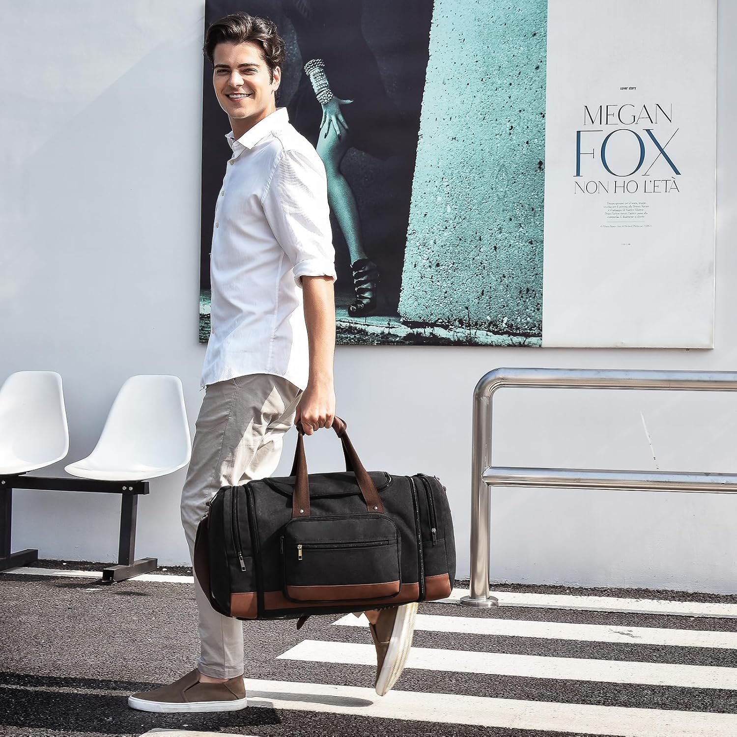 Litvyak Duffle Bag for Travel, 50L Canvas Travel Duffel Bags Overnight Weekend Gym Carry On Luggage Bag for Men & Women(Black)