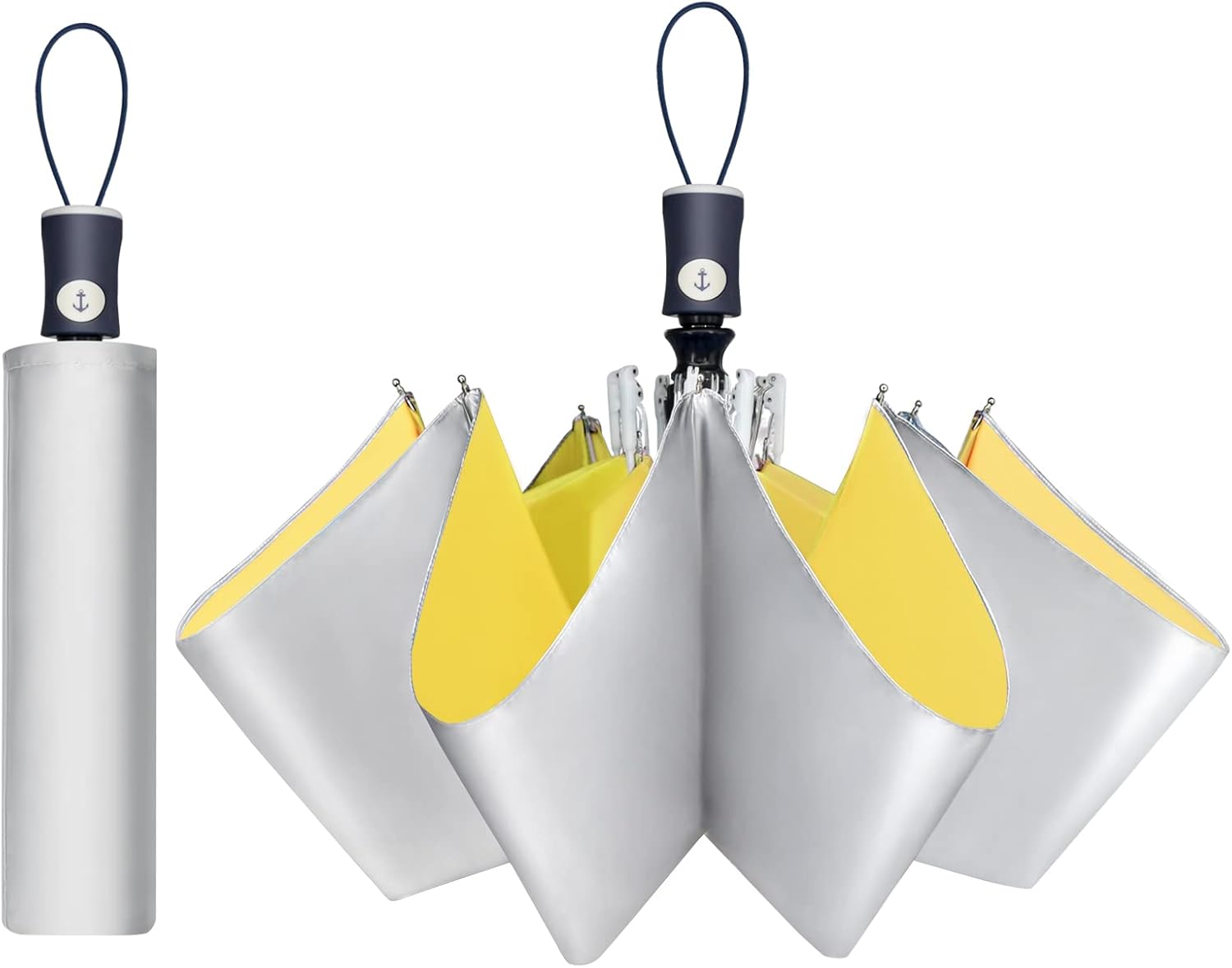 - ✅Waterproof &Anti-UV Protection : 210T water resistant pongee micro-weave high density impact fabric canopy, Lotus leaf effect hydrophobic coating on the umbrella,Made with Korean ink prints and a fixed color layer,The color is more vivid,Prevent fading.Inner,Black rubber layer absorbs all shades of light, Under the umbrella, you can feel cool, Protect skin tissue, blocks 99% of harmful UV rays!