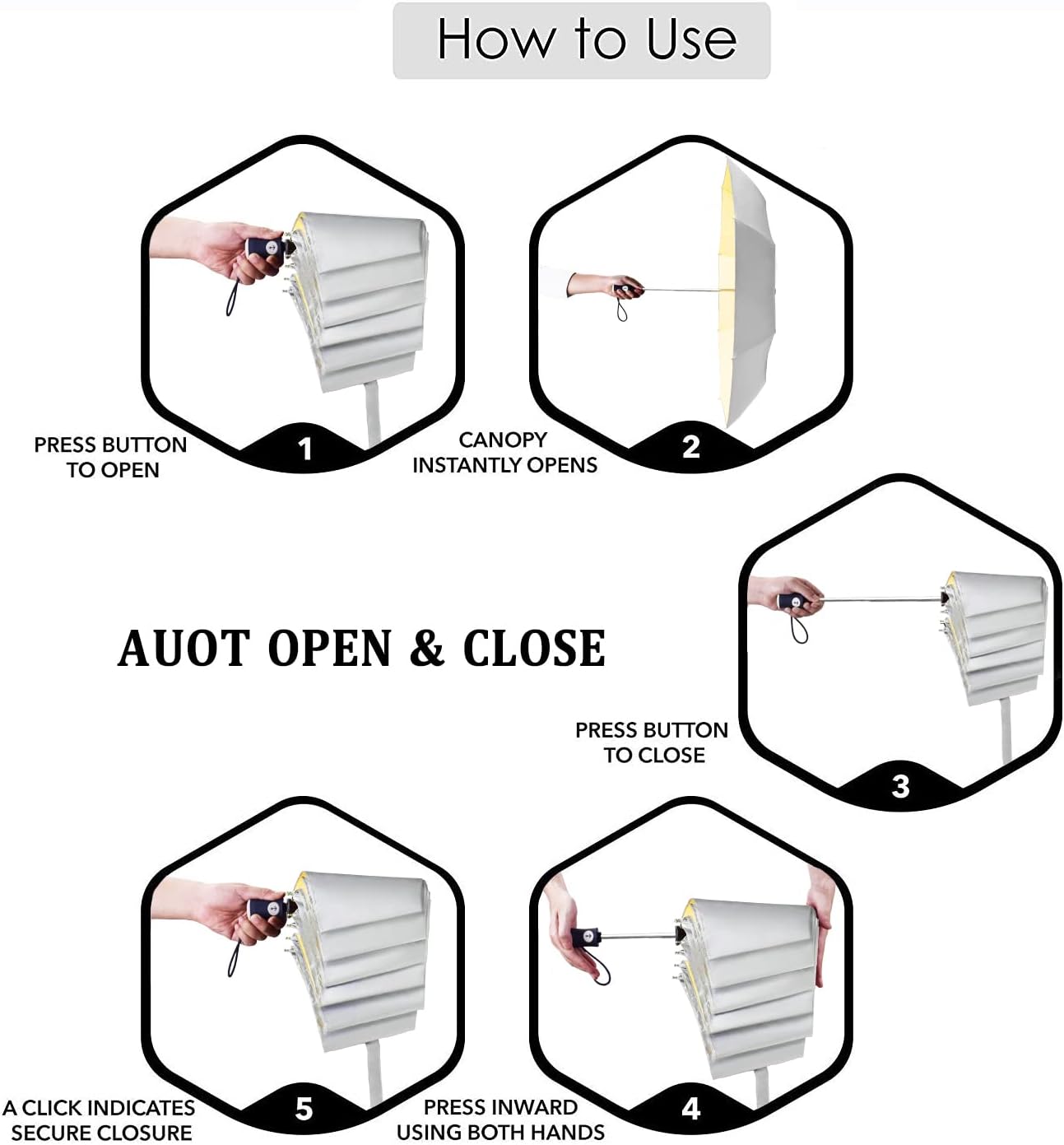 - ✅Open/Close with One Touch: This Travel Umbrella Rain Umbrella is with One touch design, Automatically open and close by push the button of the handle with one hand, Very convenient when go out or quickly enter into a car, building or tent.With 37 inch,Fitting Perfectly in Your Bag,Suitcase,or Kids Backpack.It is Good Gift Choice for Parents,Friends,Colleagues,Lovers.