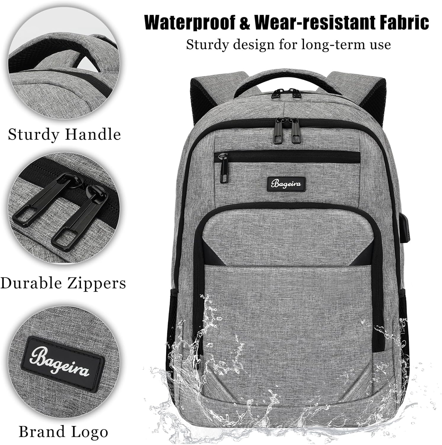 Travel Laptop Backpack for men women, School Backpacks for teen boys 15.6 Inch Durable Water Resistant Anti Theft Bookbag with USB Charging Port, College High School Business Computer Bookbags, Grey