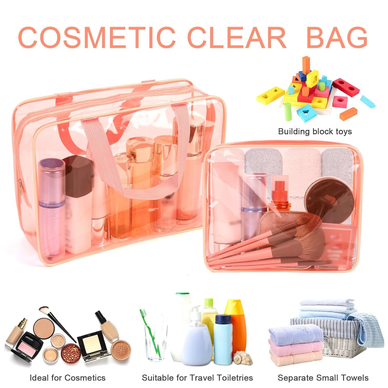 APREUTY Clear Makeup Bags, TSA Approved 6 Pcs Cosmetic Makeup Bags Set Clear PVC with Zipper Handle Portable Travel Luggage Pouch Airport Airline Vacation Organization (Peach)