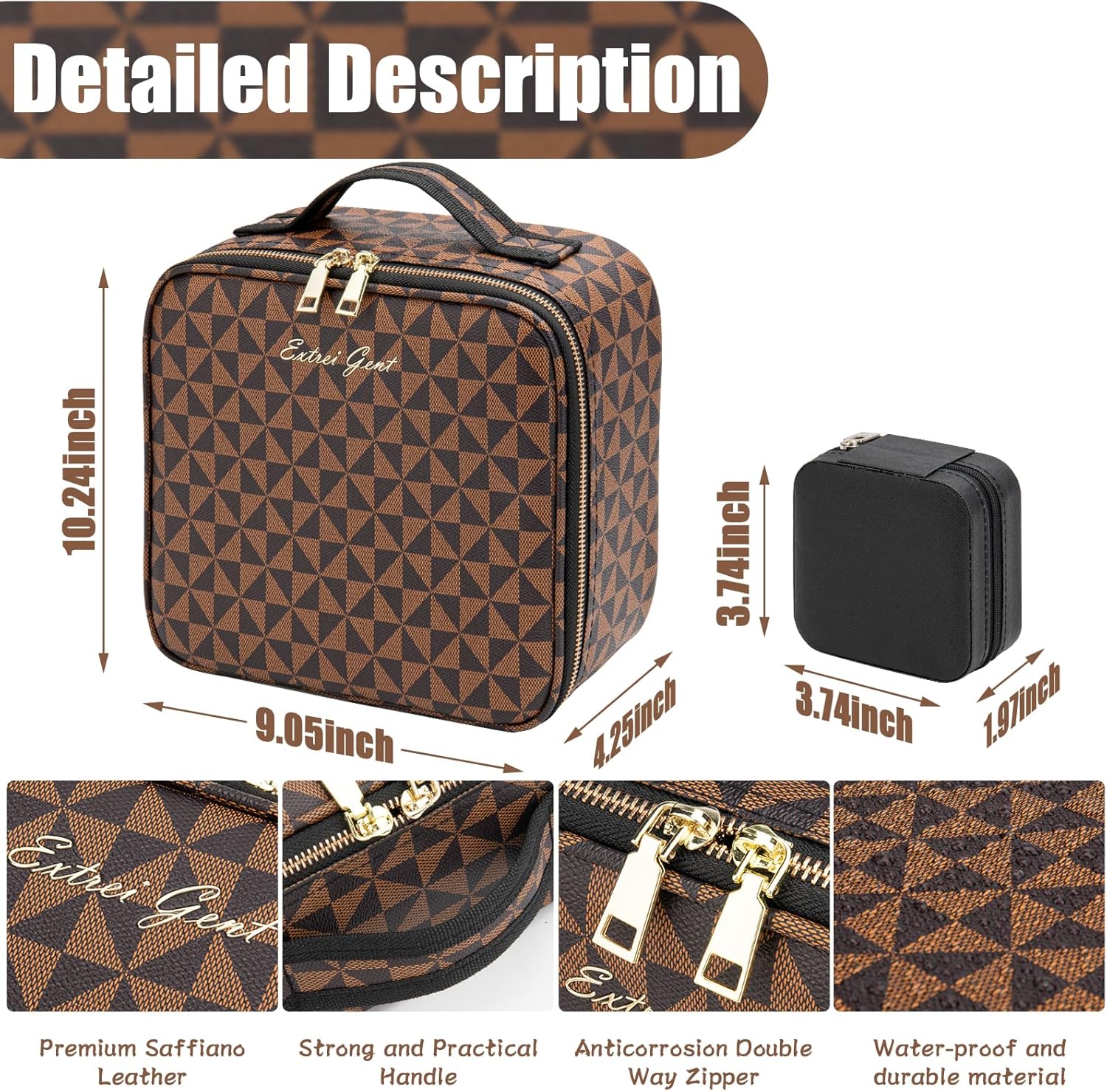 - 【Multi-purpose】This cosmetic case is just right for you to carry when you go out, whether you are going on a trip, a business trip or visiting your parents, the cosmetic case is your good partner, it is also a good gift choice, we also deliver one more jewelry Box for storing your jewelry while traveling.