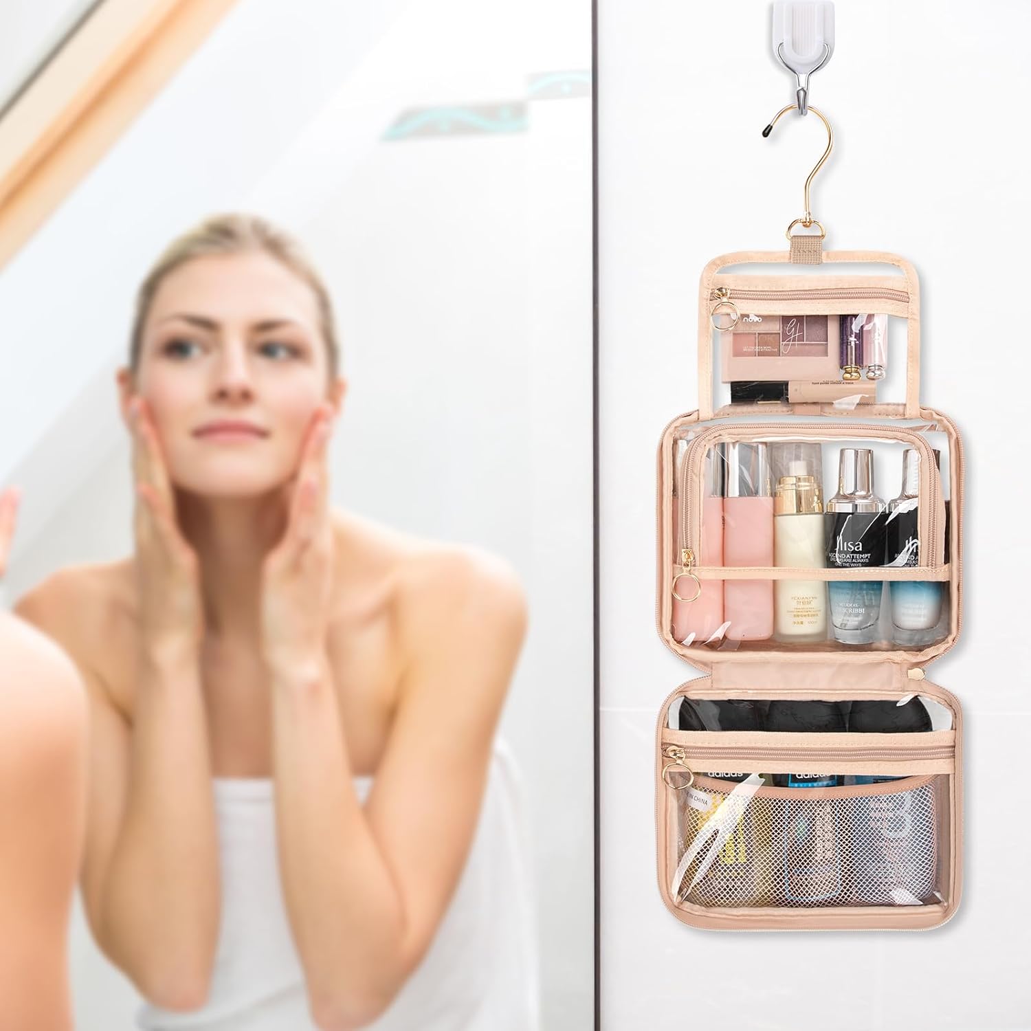 CUBETASTIC Clear Toiletry Bag for Women, Small Travel Bag with 360° Hanging Hook Clear Makeup Bags for Travelling Portable Cosmetic Organizer Case Skincare Pouch