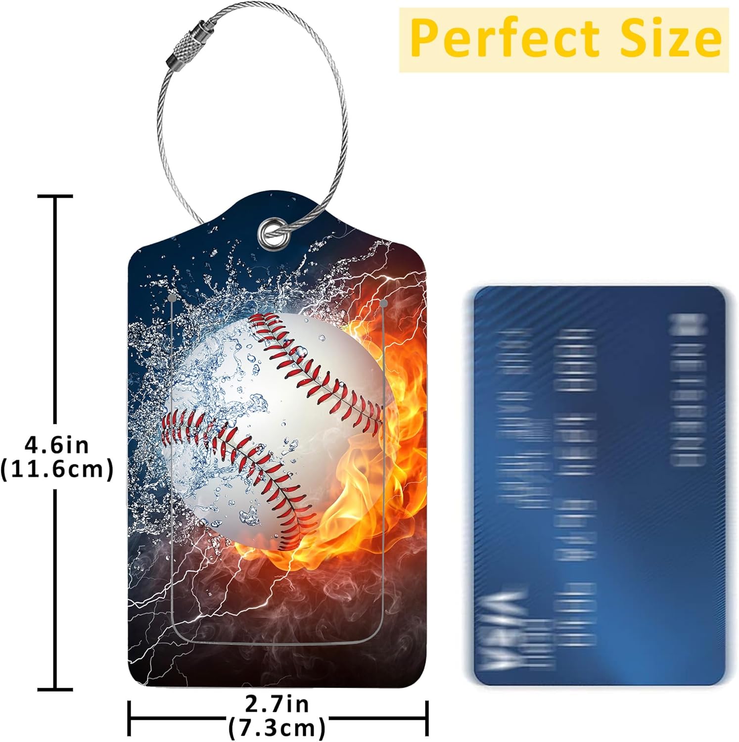 2 Pack Luggage Tags for Suitcases,Baseball Ball on Fire and Water Luggage Tag,PU Leather Id Label Luggage Tags with Stainless Steel Loop and Privacy Cover for Women Men Teens Travel