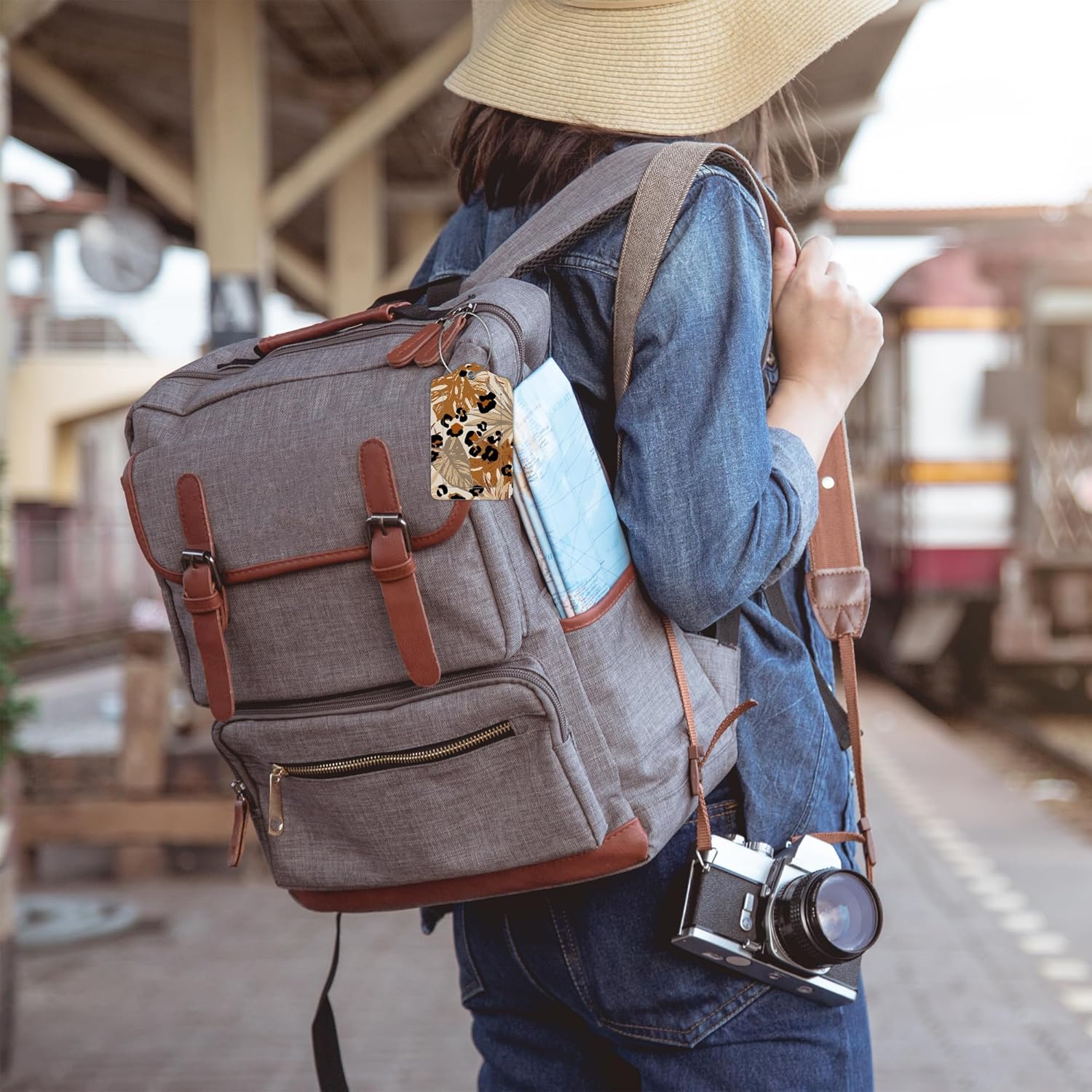 2 Pack Abstract Tropical Leaves Luggage Tags for Suitcases,Modern Boho Leather Baggage Suitcases Tag Name ID Label Privacy Cover Travel Bag Tags for Women Men Boys Girls