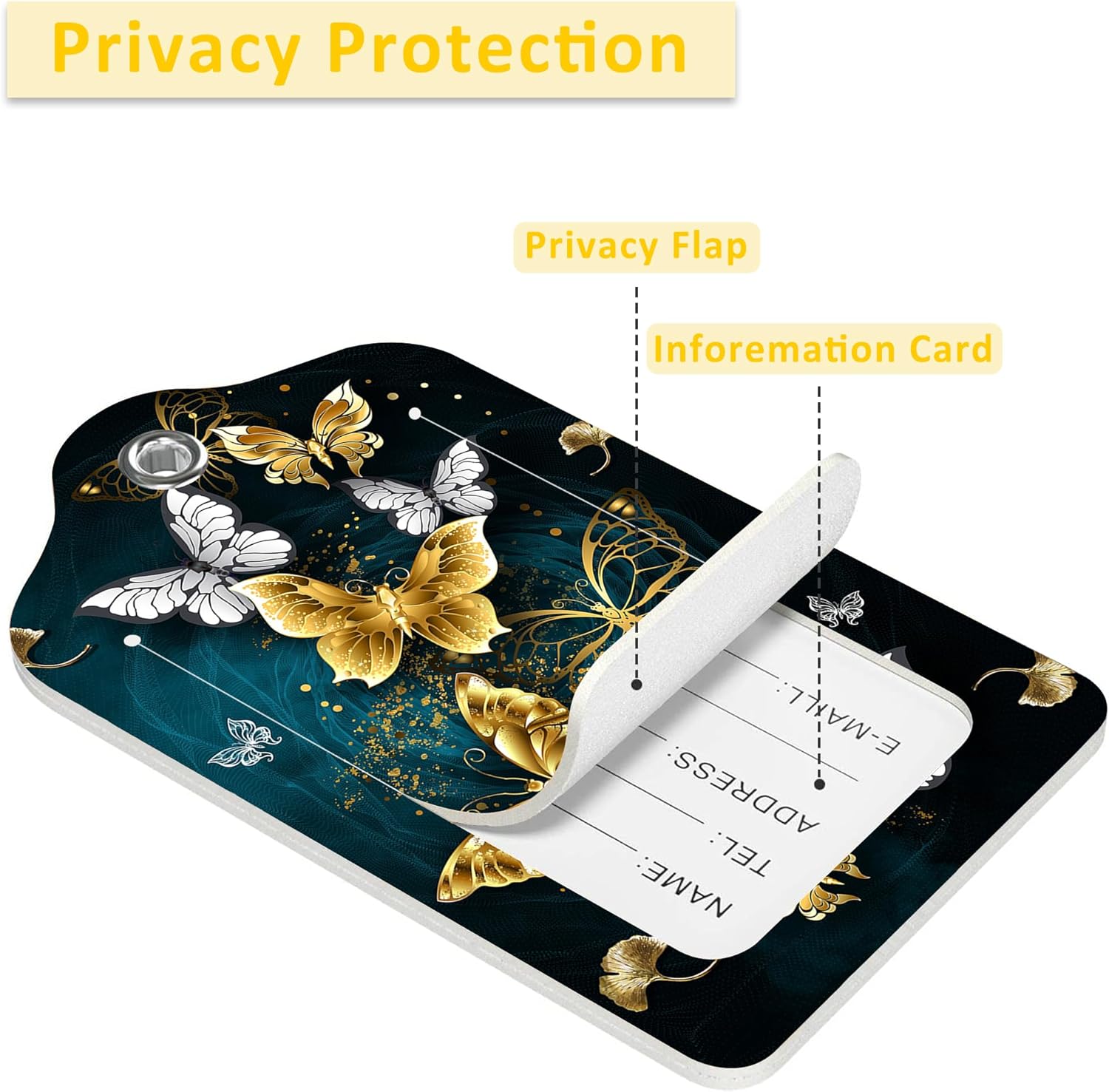 - ✅【INFORMATION SECURITY】:Each luggage tag comes with a privacy cover,ensuring that your personal information is not easily visible to others and the luggage tag has a small information sheet on which personal information can be filled to identify and assist in the recovery of lost luggage.