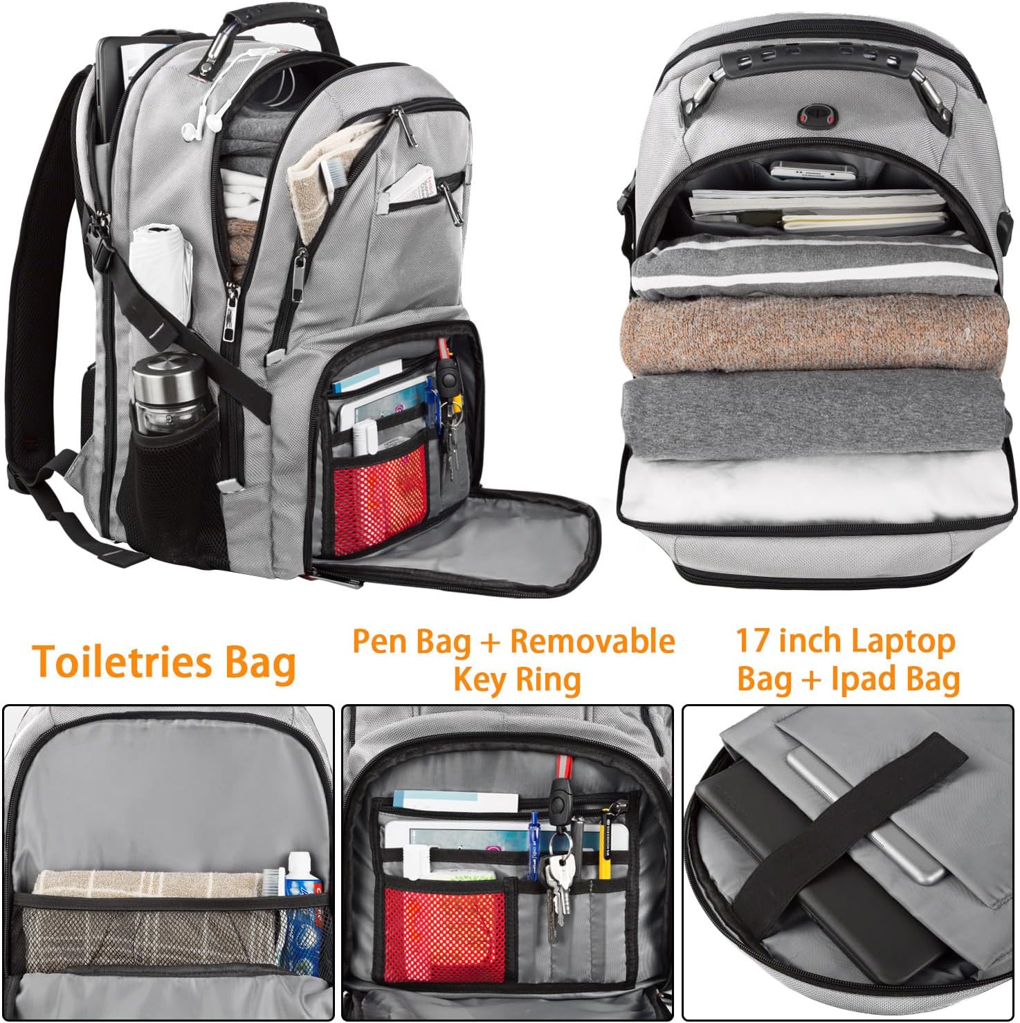 LTINVECK Extra Large 50L Travel Laptop Backpack, Computer bag Backbag with USB Charging Port, TSA Friendly Durable Big RFID Heavy Duty Business Tech Backpack Fits 17 Inch Laptops for Men Women, Grey