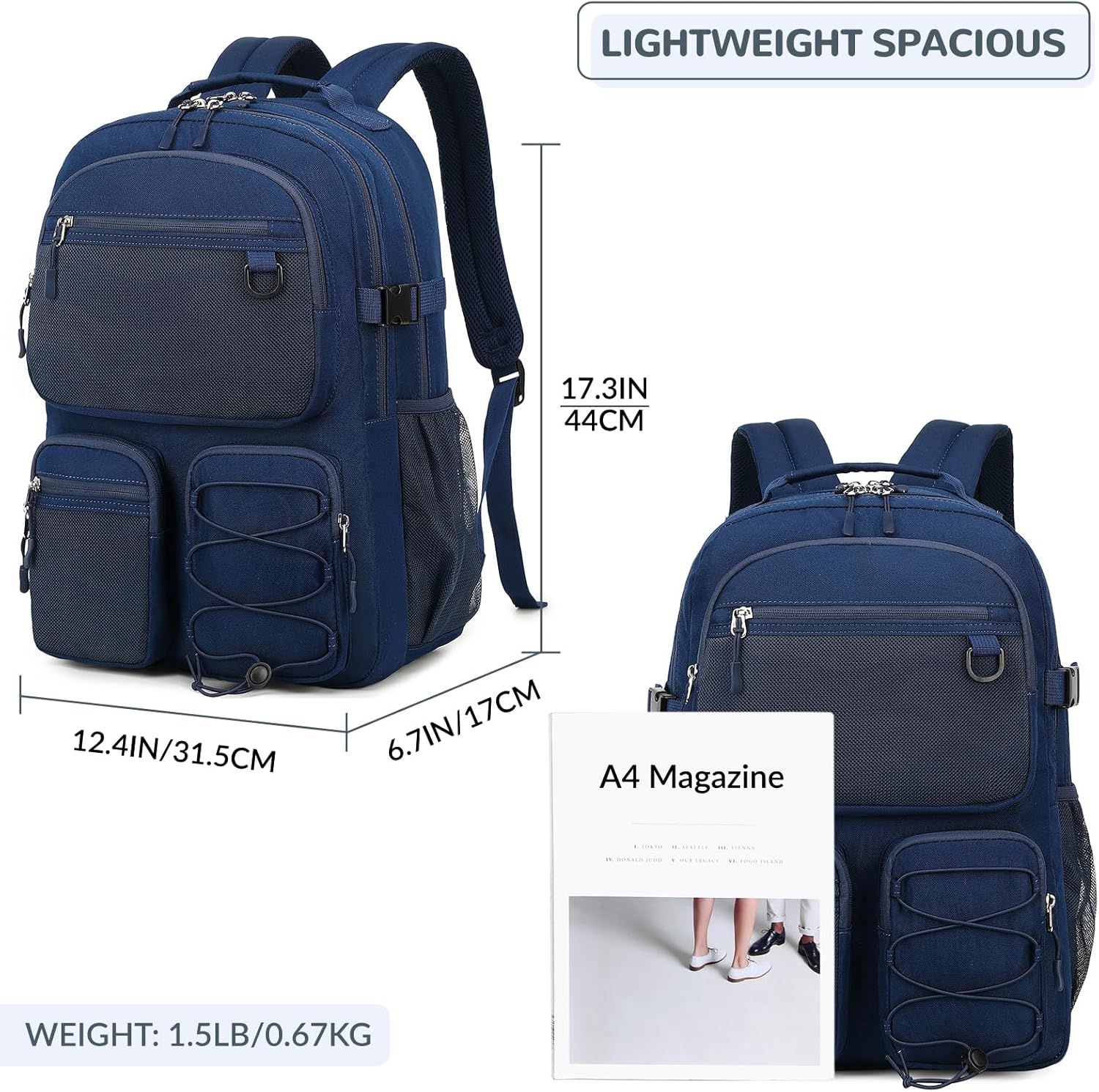 Lohol Water Resistant Daypack with Mulitiple Pockets for School Travel Outdoor College, 15.6 inch Laptop Backpack for Men and Women (Navy Blue)