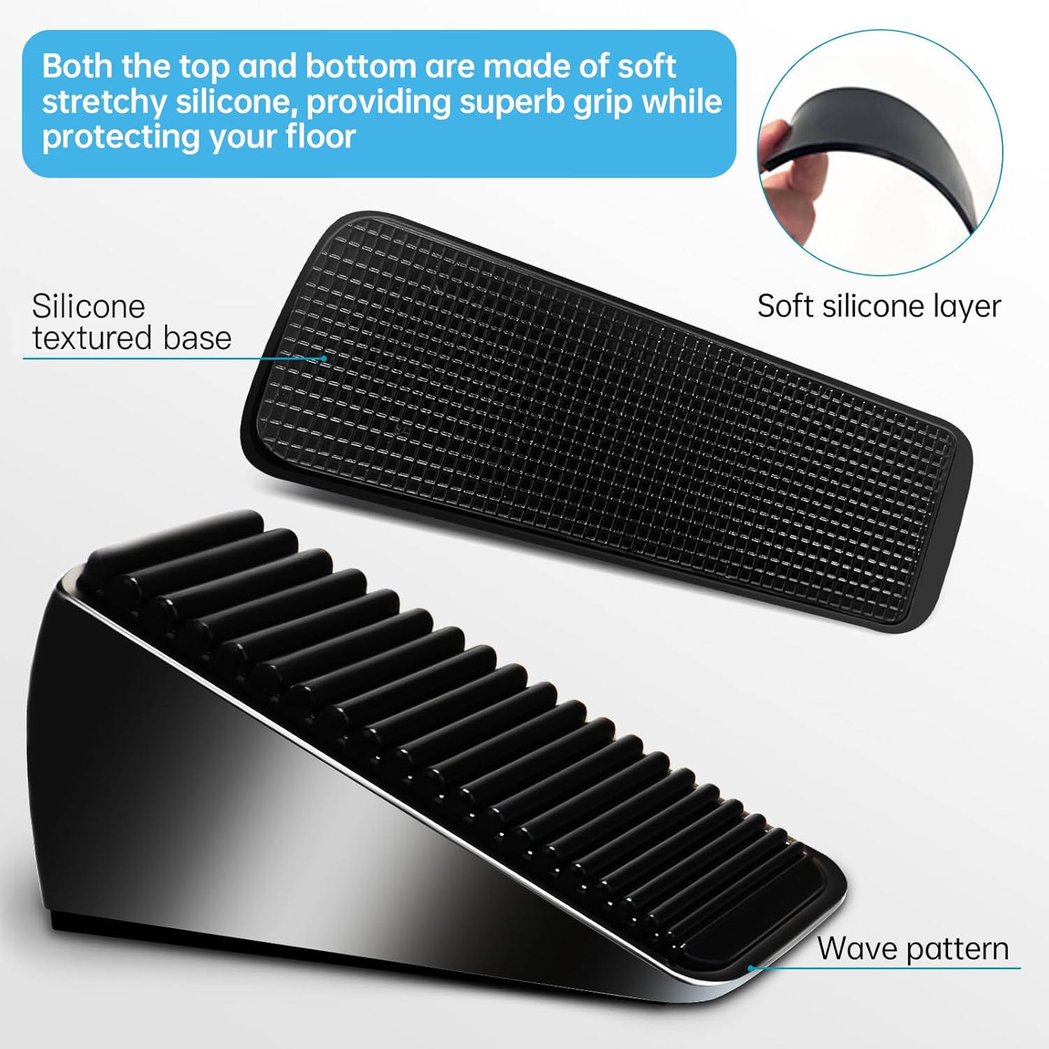 2Pc Strongest Large Door Stop - Heavy Duty Tall Wedge Stoppers for Bottom, up to 2.6In Doorstop, Zinc Alloy and Silicone Made, Suits Any Heavy Door and Smooth Floor
