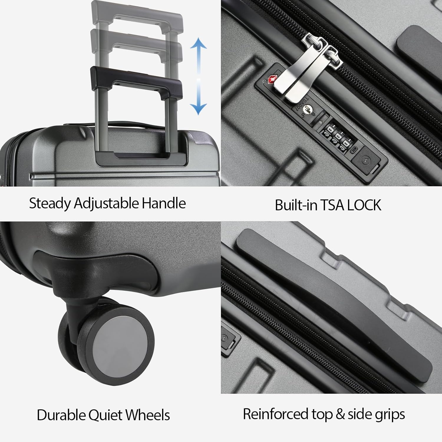 KROSER Hardside Expandable Carry On Luggage with Spinner Wheels & Built-in TSA Lock, Durable Suitcase Rolling Luggage with USB Port, Carry-On 20-Inch Steel Grey