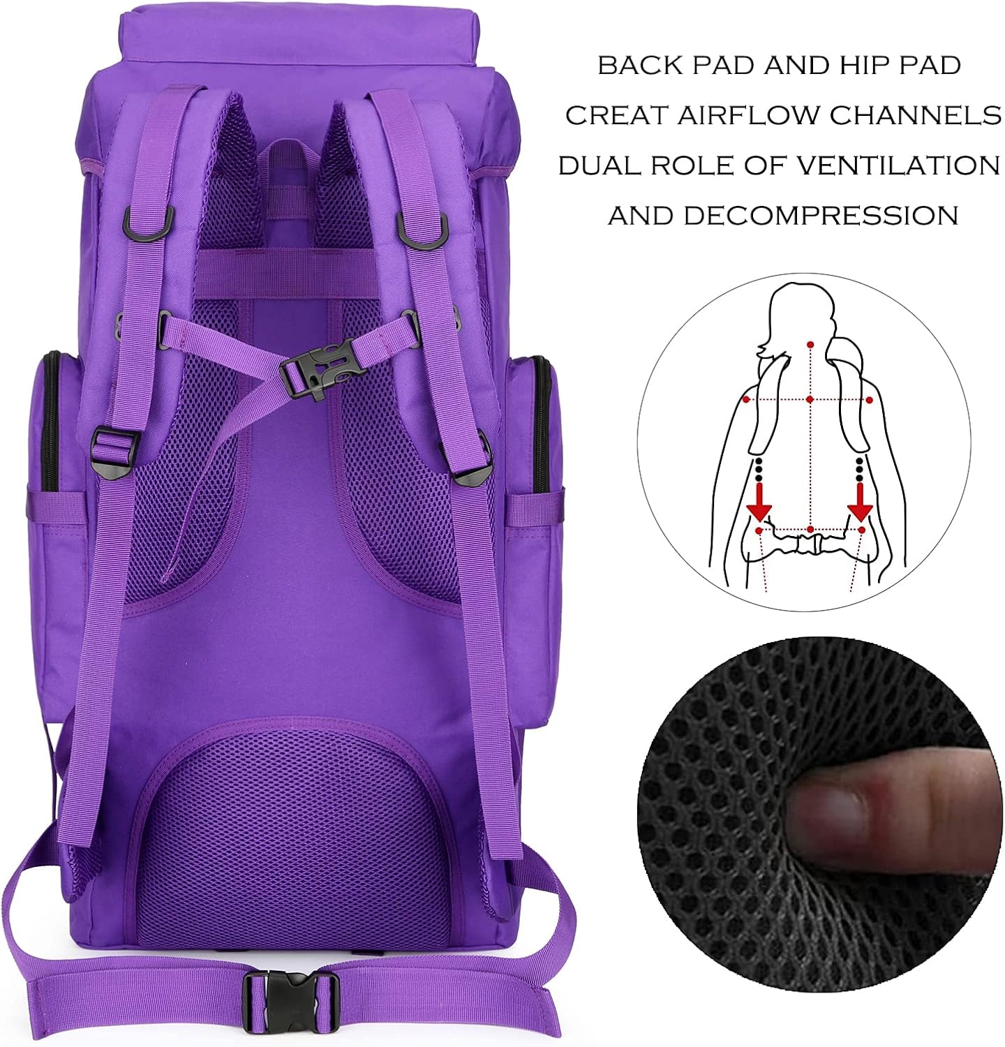 - 【Comfortable & Breathable】: Backpacker backpack with widened mesh breathable sponge padding shoulder straps help relieve the stress from your shoulder. Thickened sponge back support for best ventilation and easing burden. (NO INTERNAL FRAME).