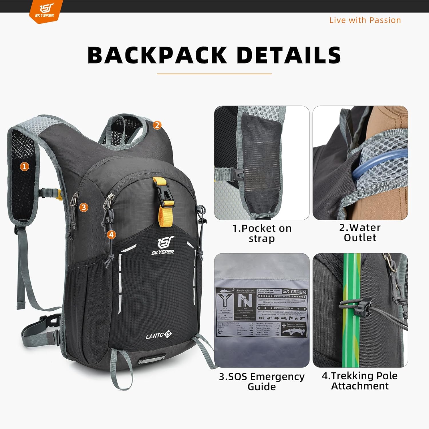 SKYSPER Small Hiking Backpack - 15L Travel Daypack Lightweight Bag Water Resistant Hiking Backpacks for Women Men