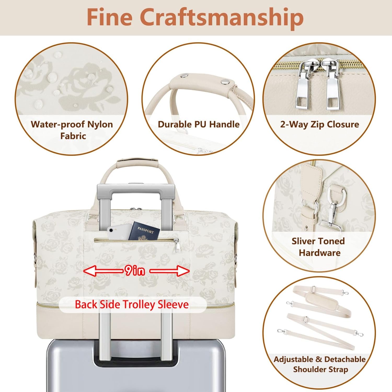 Weekender Bag for Women, Travel Duffel Bag Carry On Overnight Bag with Shoe Compartment Large Nylon Travel Weekend Tote Bag