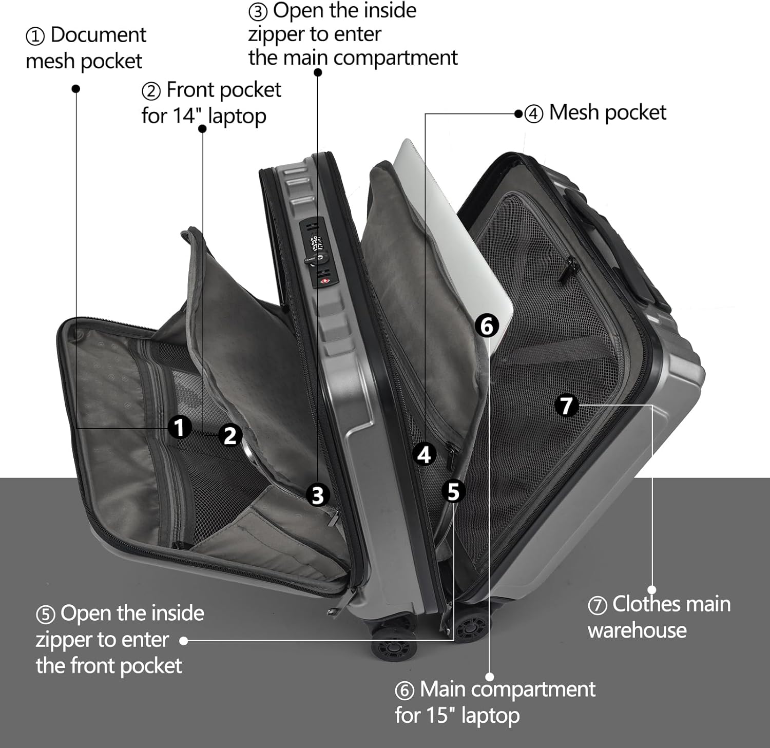 - 2 Laptop Compartments Design: With its divide front pocket designed to fit a 14" tablet and Main Compartment for 14" Laptop, you can easily access your electronics while on the go. Zippered mesh pockets for computer accessories, toiletries. 16 inch luggage measures 41*20*43cm(16.14*8*17.12in) including wheels, 2.9Kg(6.39Lbs), 39L capacity. Different airlines have different baggage allowances, please refer to the requirements of each airline for details.