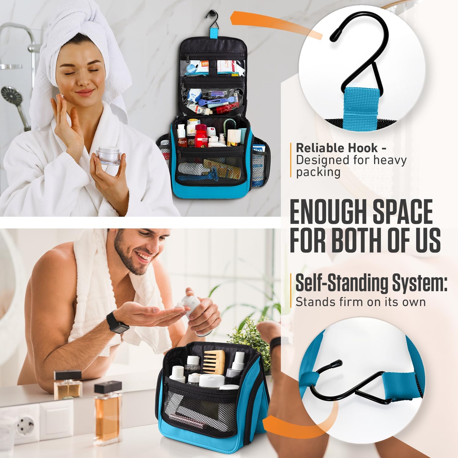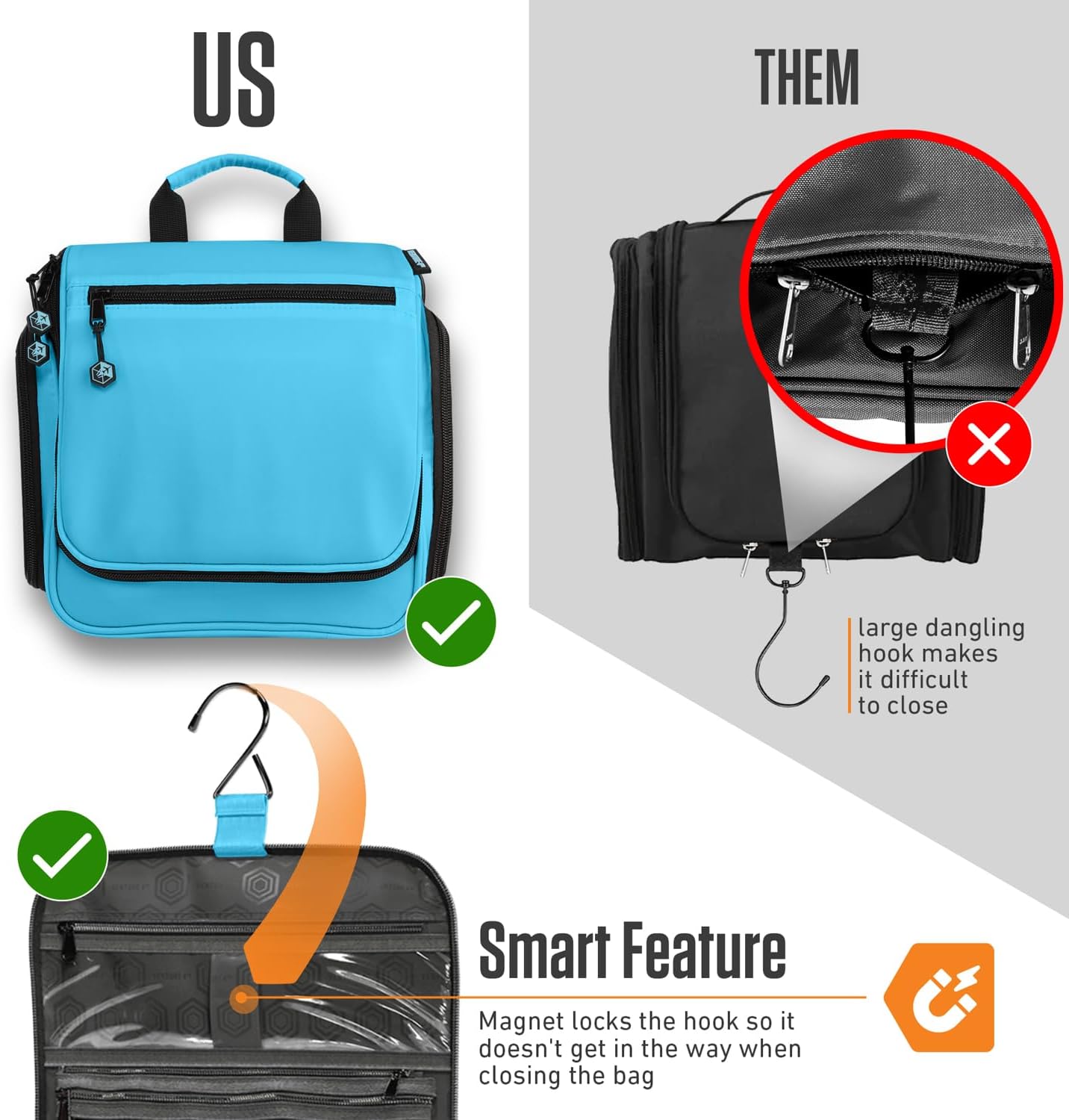 VENTURE 4TH Hanging Travel Toiletry Bag for Women & Men - Travel Organizer with Expandable Compartments & Removable Clear Pouch for Toiletries (Light Blue)
