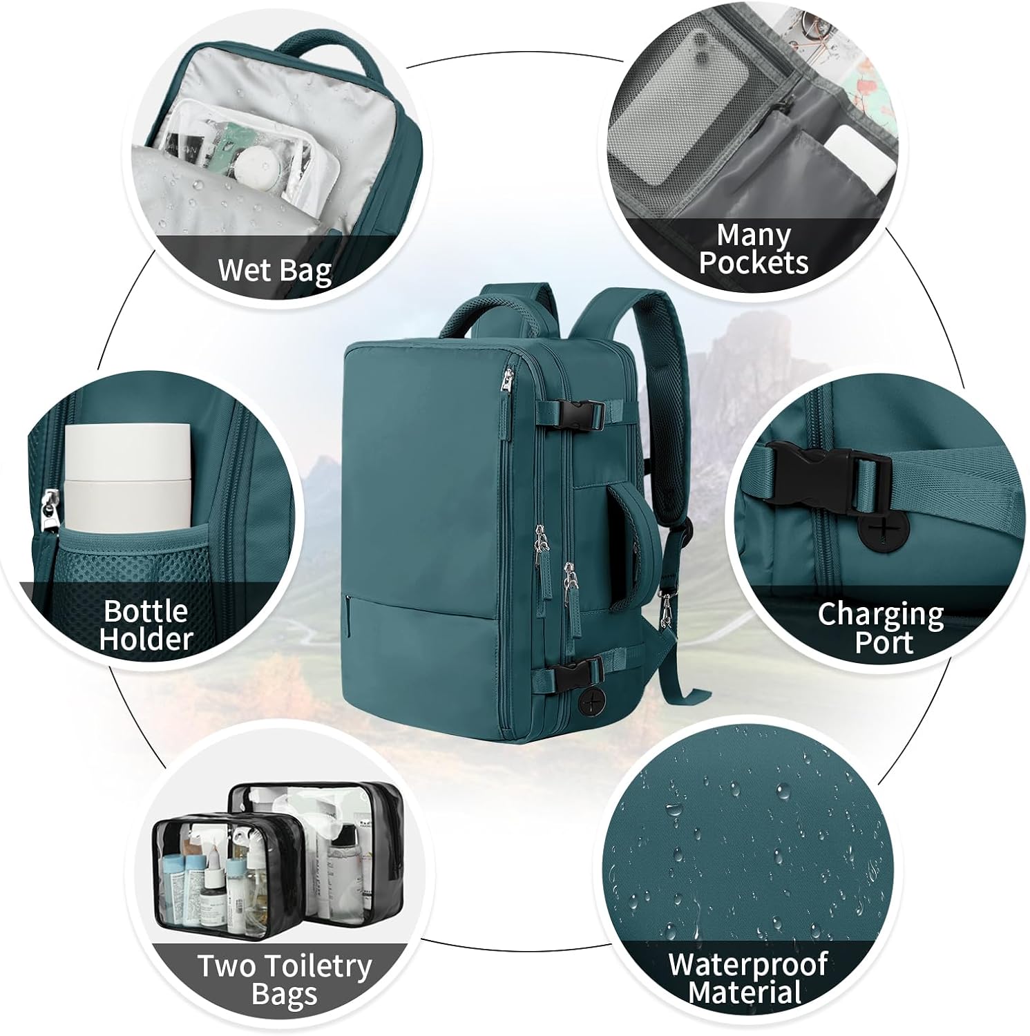 - [Expandable Capacity & Suitable for 17.3 inch Laptop]: This laptop backpack has a laptop compartment with good thick cushion, which can protect your laptop well and suit for 17.3 inch laptops as well. This travel backpack has lots of space and pockets for what you need it for, and the capacity is 35L. A good companion for 3-5 days travel. (Backpack Net Weight: 2Lb)