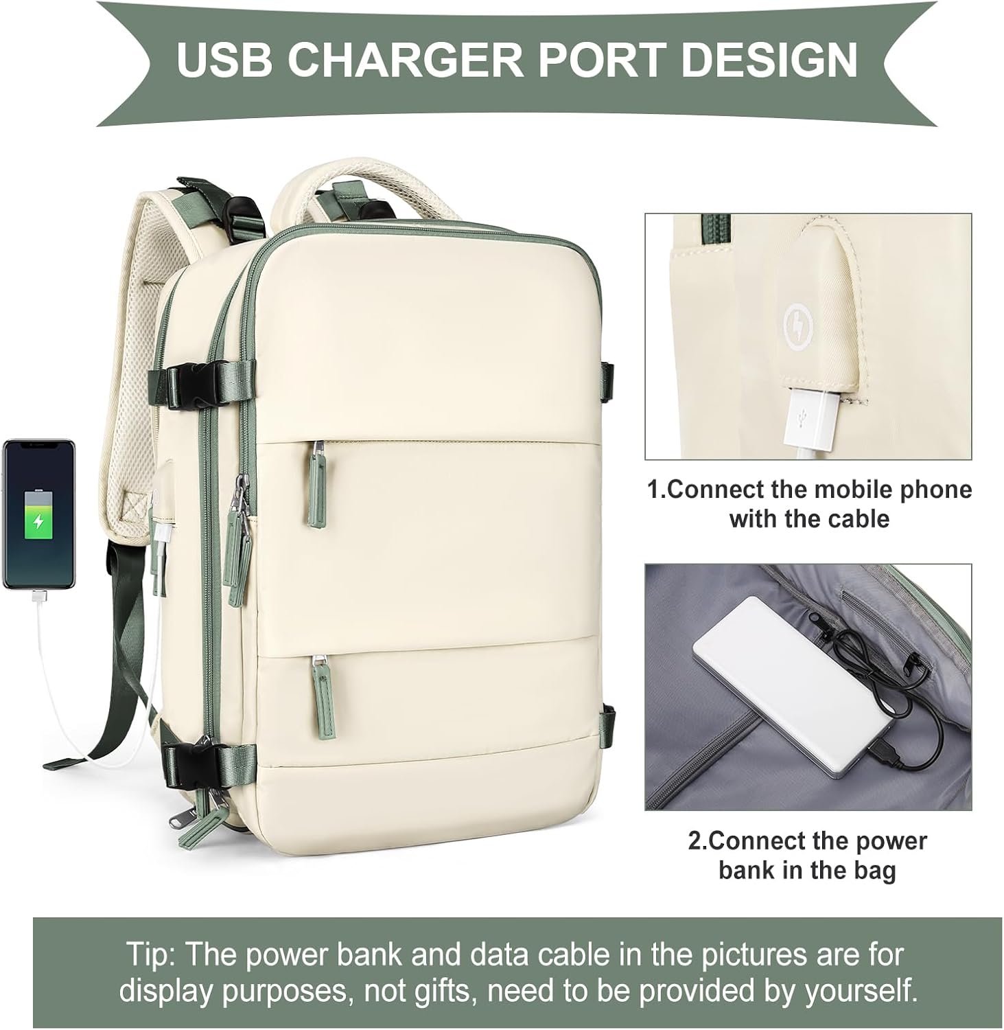 coowoz Large Travel Backpack for Women Men,Carry On Backpack Flight Approved,Hiking Backpack Outdoor Rucksack Casual Daypack Fit 15.6 Inch Laptop Shoes Compartment White Green L