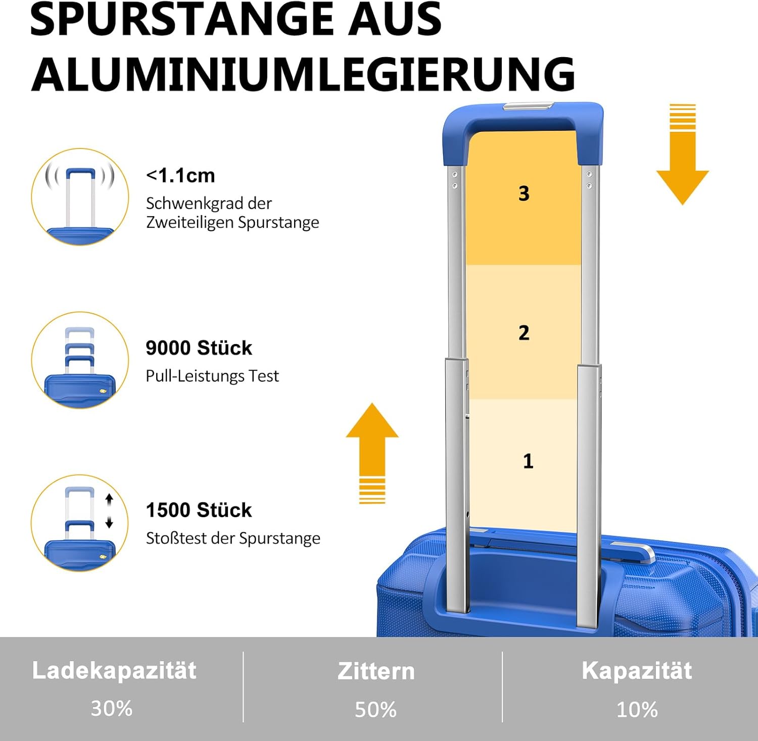- [Reliable Handling & Effortless Mobility]: Our push-button telescoping handle adjusts to your preferred height, delivering a comfortable grip that's built to last. Experience effortless rolling on any terrain with our 8 smooth-gliding spinner wheels, ensuring a damage-free journey every step of the way.