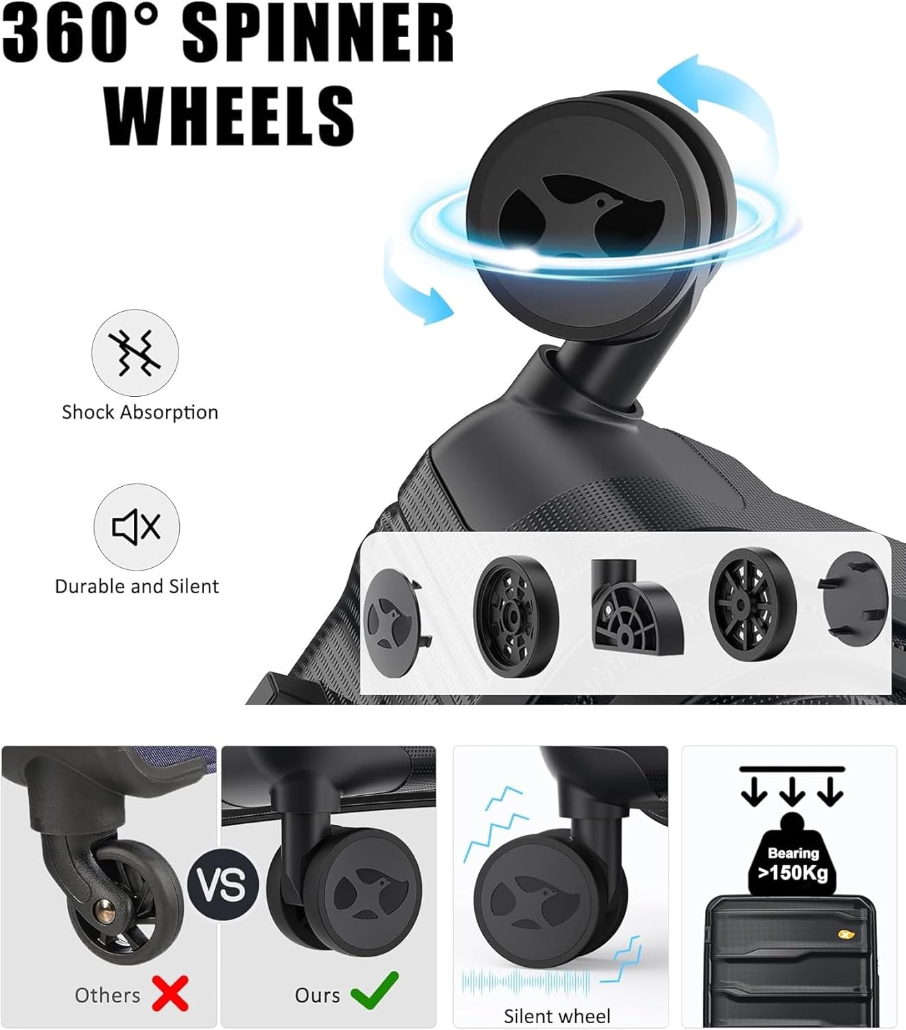 - [Reliable Handling & Effortless Mobility]: Our push-button telescoping handle adjusts to your preferred height, delivering a comfortable grip that's built to last. Experience effortless rolling on any terrain with our 8 smooth-gliding spinner wheels, ensuring a damage-free journey every step of the way.