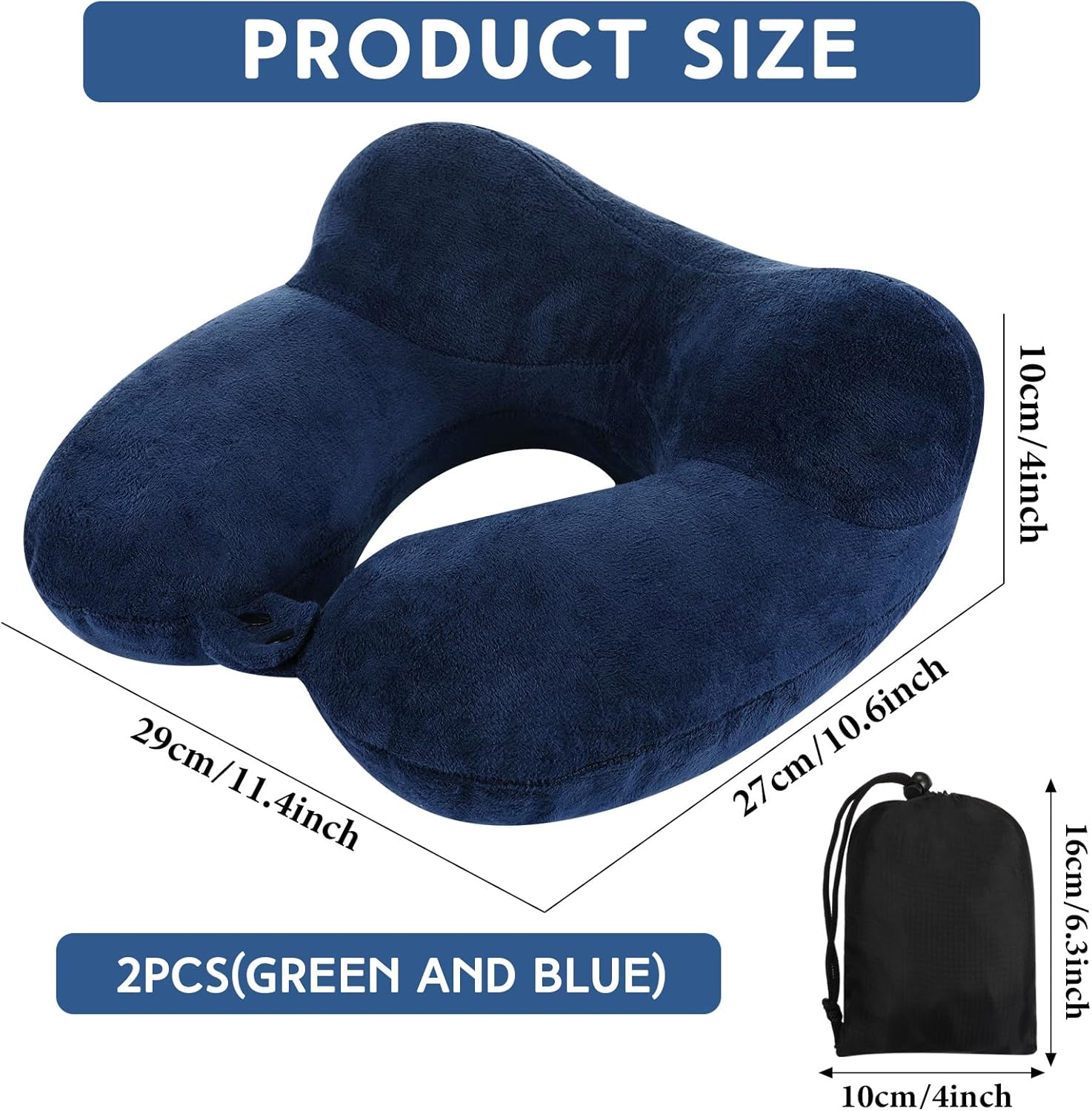 Sintuff 2 Pack Inflatable Travel Pillow for Airplanes Inflatable Neck Flight Pillows with Compact Bag and Blindfold for Traveling, Airplane, Train, Car, Office(Peacock Green and Blue)