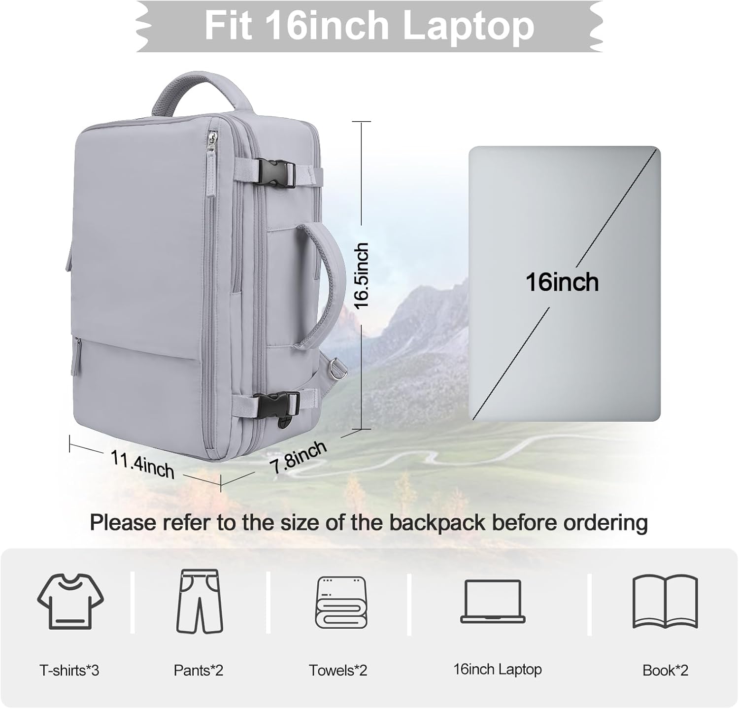 - [Expandable Capacity & Suitable for 17.3 inch Laptop]: This laptop backpack has a laptop compartment with good thick cushion, which can protect your laptop well and suit for 17.3 inch laptops as well. This travel backpack has lots of space and pockets for what you need it for, and the capacity is 35L. A good companion for 3-5 days travel. (Backpack Net Weight: 2Lb)