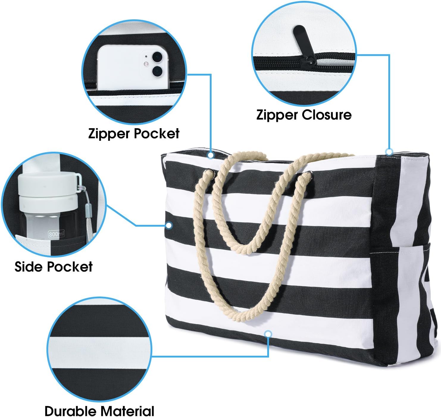 - Large Capacity: Becokan beach bag tote can hold 4-6 large beach towels, extra clothes, shoes, sunblock, snacks, water bottles, beach toys, etc. Recommend for a beach vacation, swim pool bag, nursing bag, weekend bag, cruise must haves, everyday bag, etc