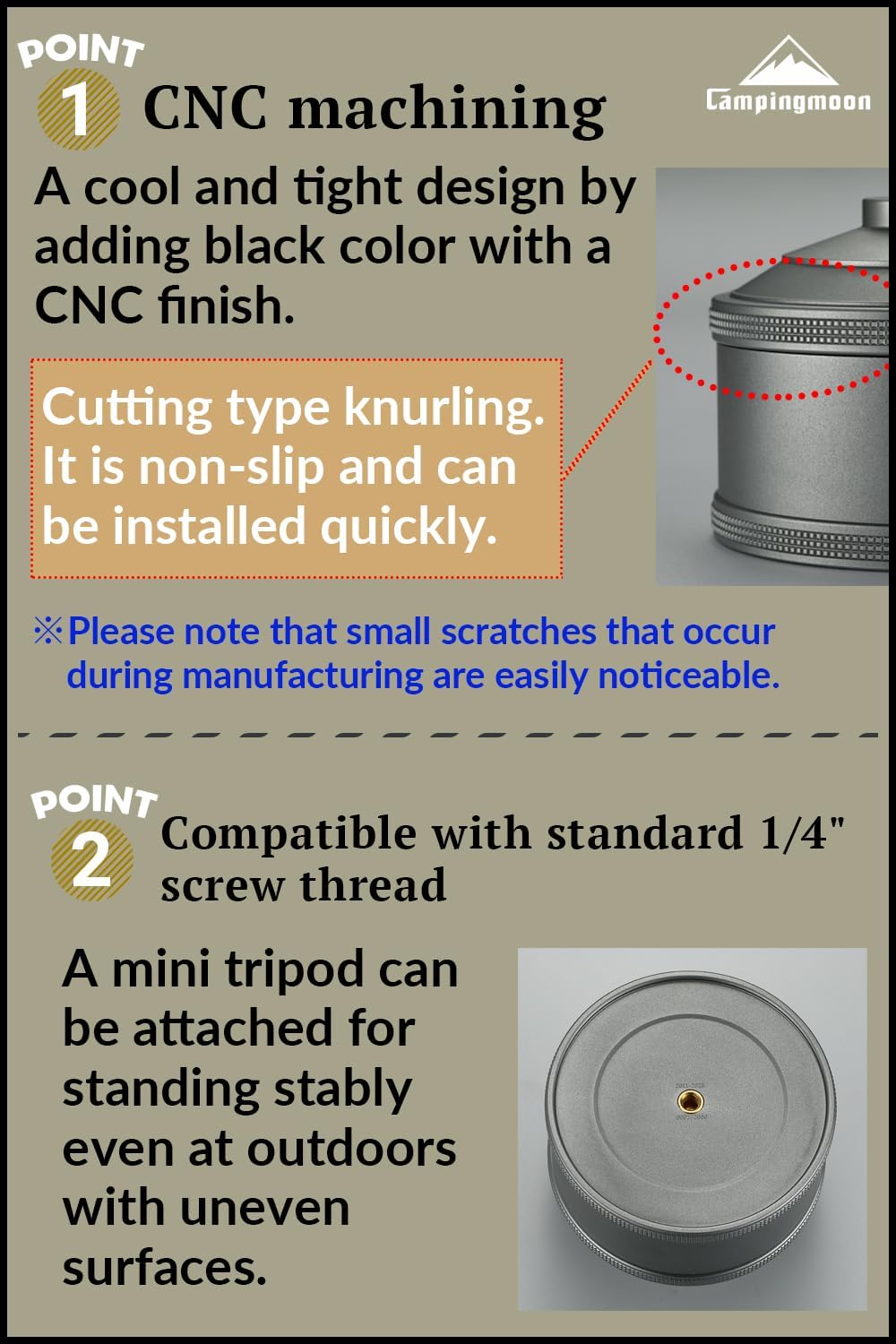 - Compatible with standard 1/4" screw thread. A mini tripod can be attached for standing stably even at outdoors with uneven surfaces.
