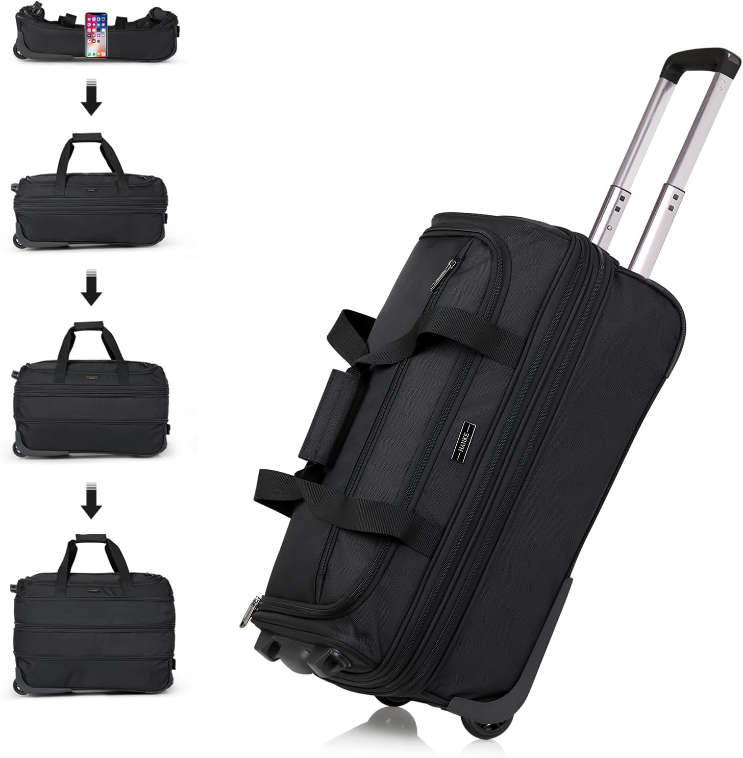 Hanke Expandable Carry On Luggage Suitcases with Wheels Foldable Duffle Bag for Travel Carry On suitcase Weekend Bag for Women Men(Black)