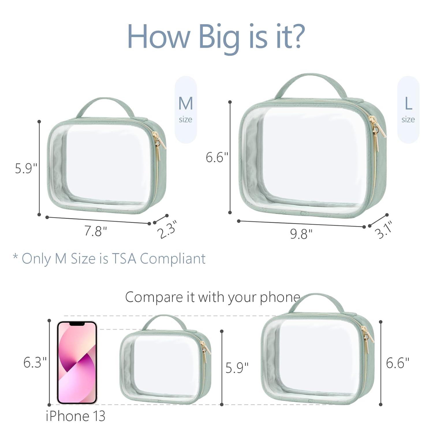 PACKISM TSA Approved Toiletry Bag, 2 Pack Clear Makeup Bags with Handle Large Opening, Clear Toiletry Bag Fit Carry-on Travel Essential, Travel Bags for Toiletries, Laurel Green