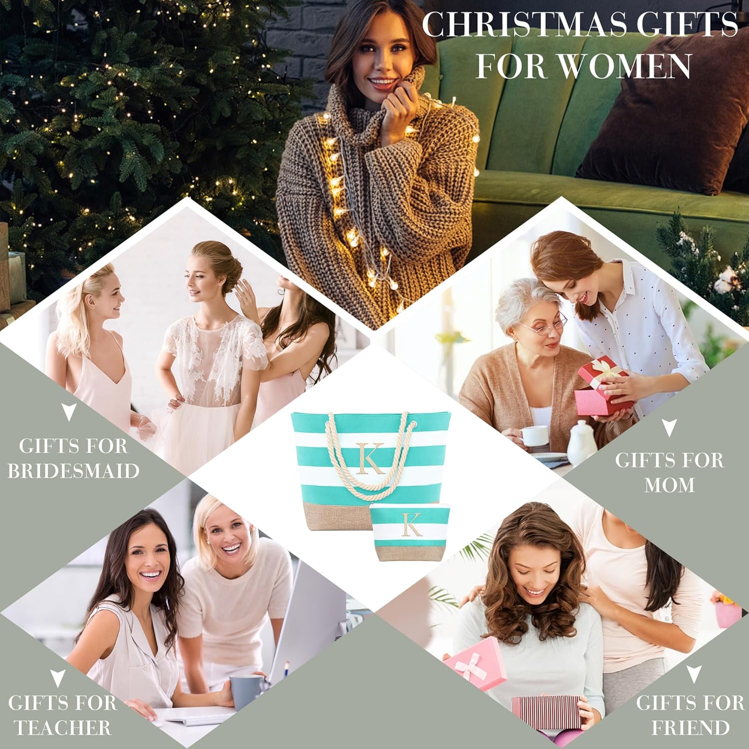 - 【MULTIFUNCTIONAL GIFTS TOTE BAG】In addition to being a beach bag, this product has multiple functions. You can use it as a shopping bag, travelling bag or daily carry bag, which is highly practical and diversified.The classic embroidered monogram, makes the beach tote bag is suitable for Wedding Day, Valentine's Day, Anniversary, Birthday, Mother's Day, Teacher's Day ,which is the personalized gift for women