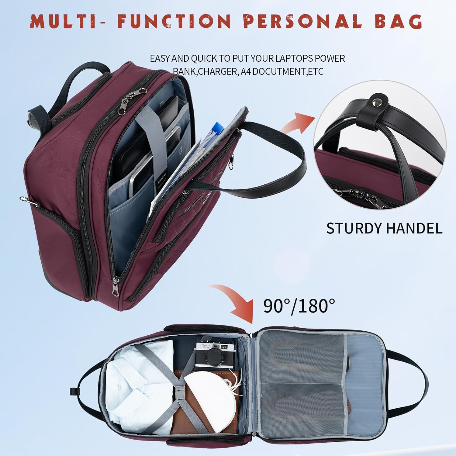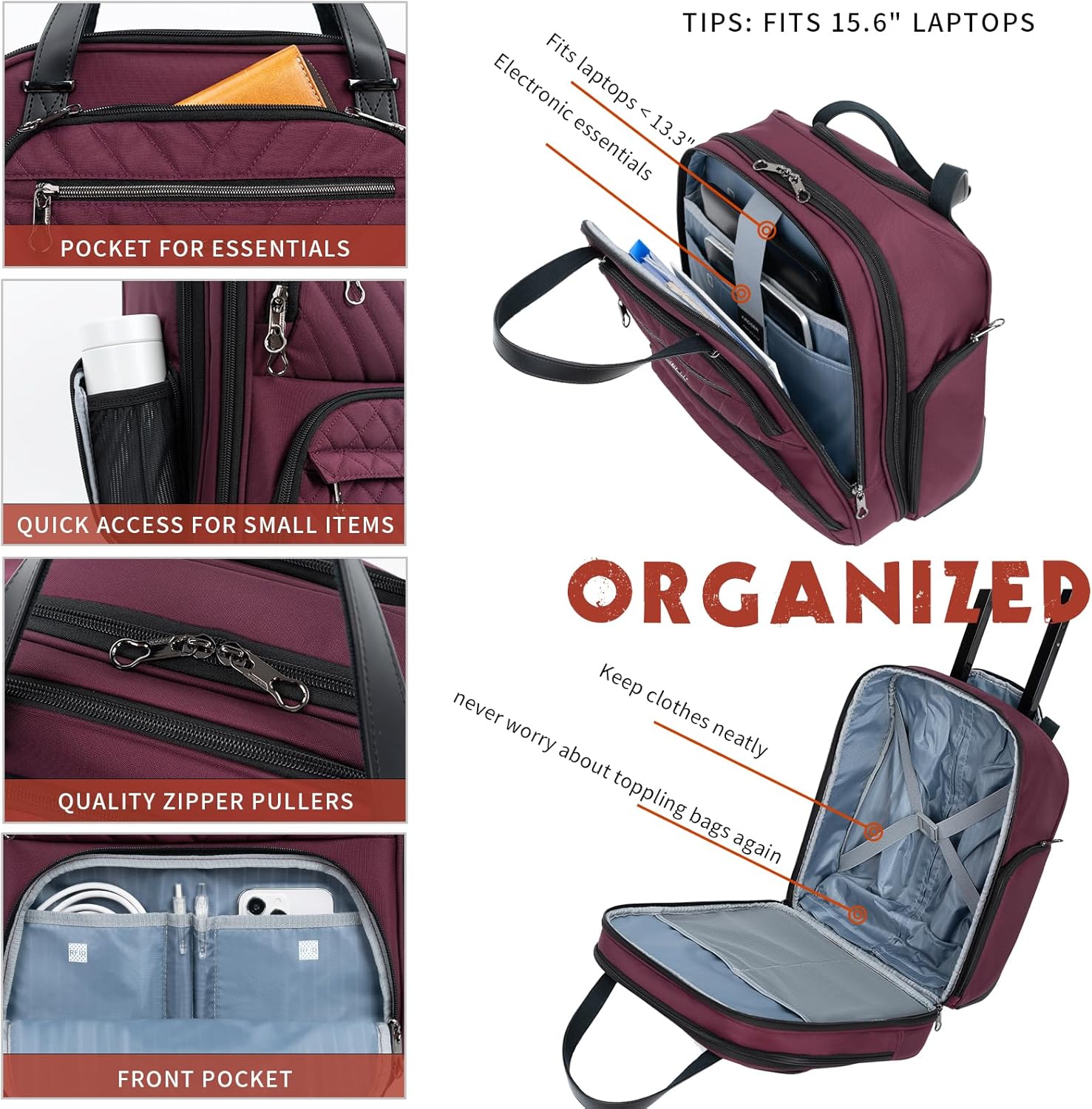 KROSER Carry On Underseat Multi-functional, 16-inch Underseater Lightweight Overnight Suitcase for Women, Burgundy