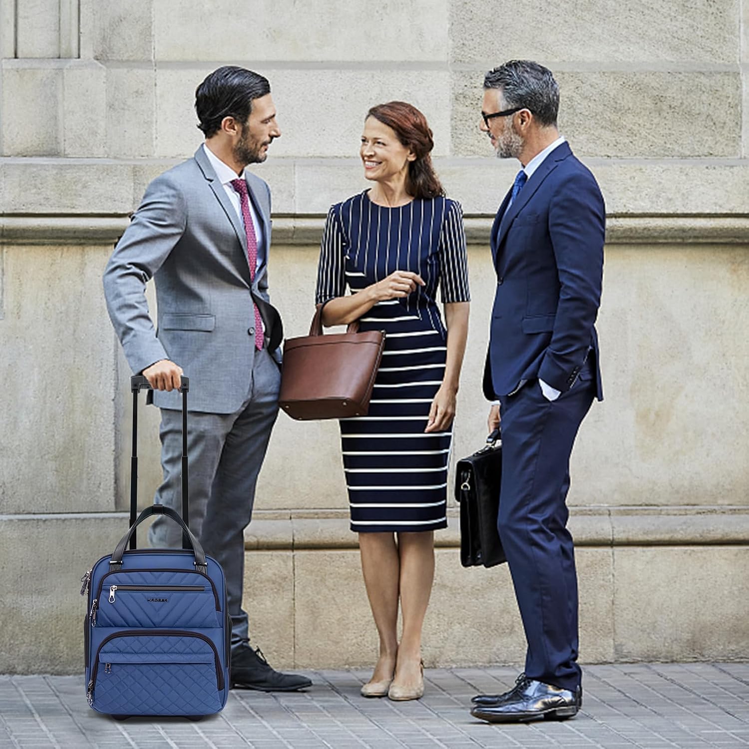 KROSER Carry On Underseat Multi-functional, 16-inch Underseater Lightweight Overnight Suitcase for Women, Haze Blue