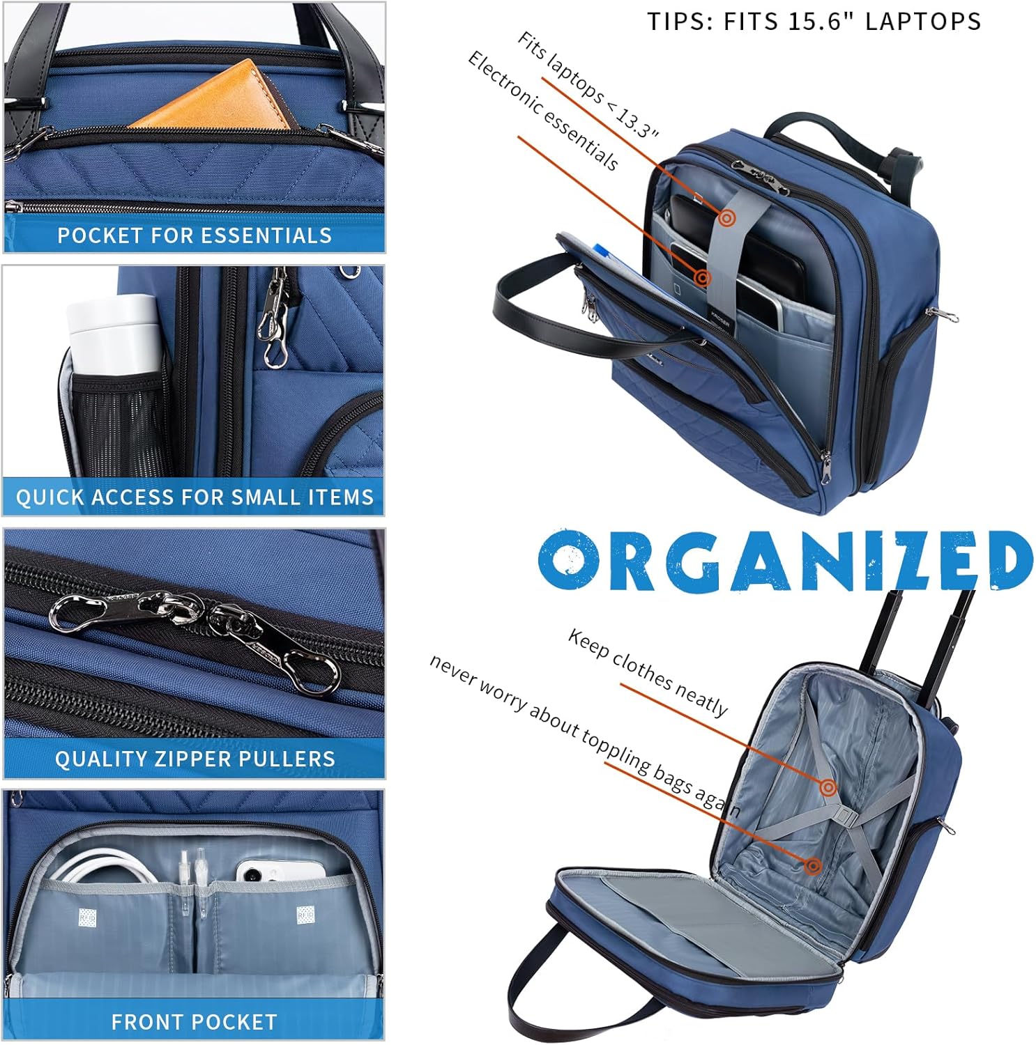 - MULTI- FUNCTION PERSONAL BAG: Spacious main compartment works well for clothes/shoes. Features a padded laptop compartment that fits laptops up to 15.6 inches. Easy-access front organizer for small items. Both sides with zipper pockets for the battery and water bottle.