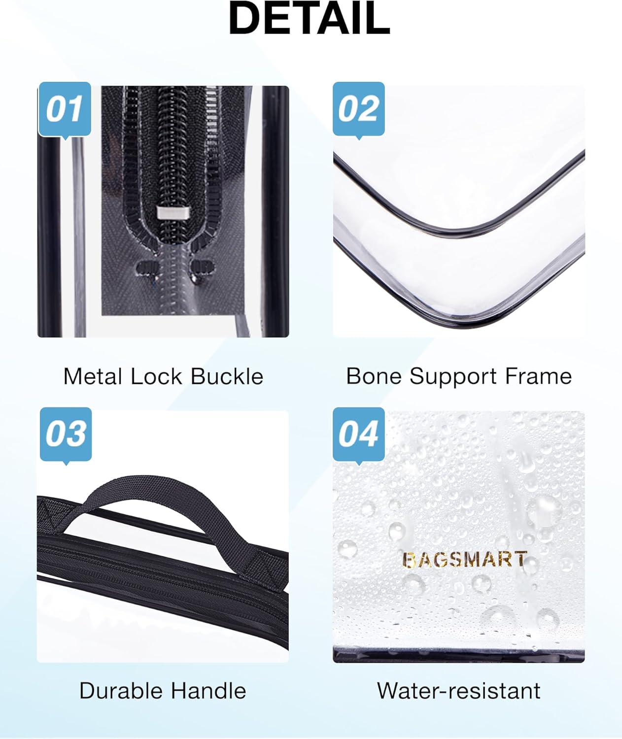 - Waterproof and Reinforced Seams: This clear makeup bag is made of thick transparent PVC material, which is durable and easy to wipe clean; The reinforced seams prevent the bag from splitting easily, effectively reducing the risk of liquids leaking out from the bag (please note that the zipper is not waterproof)