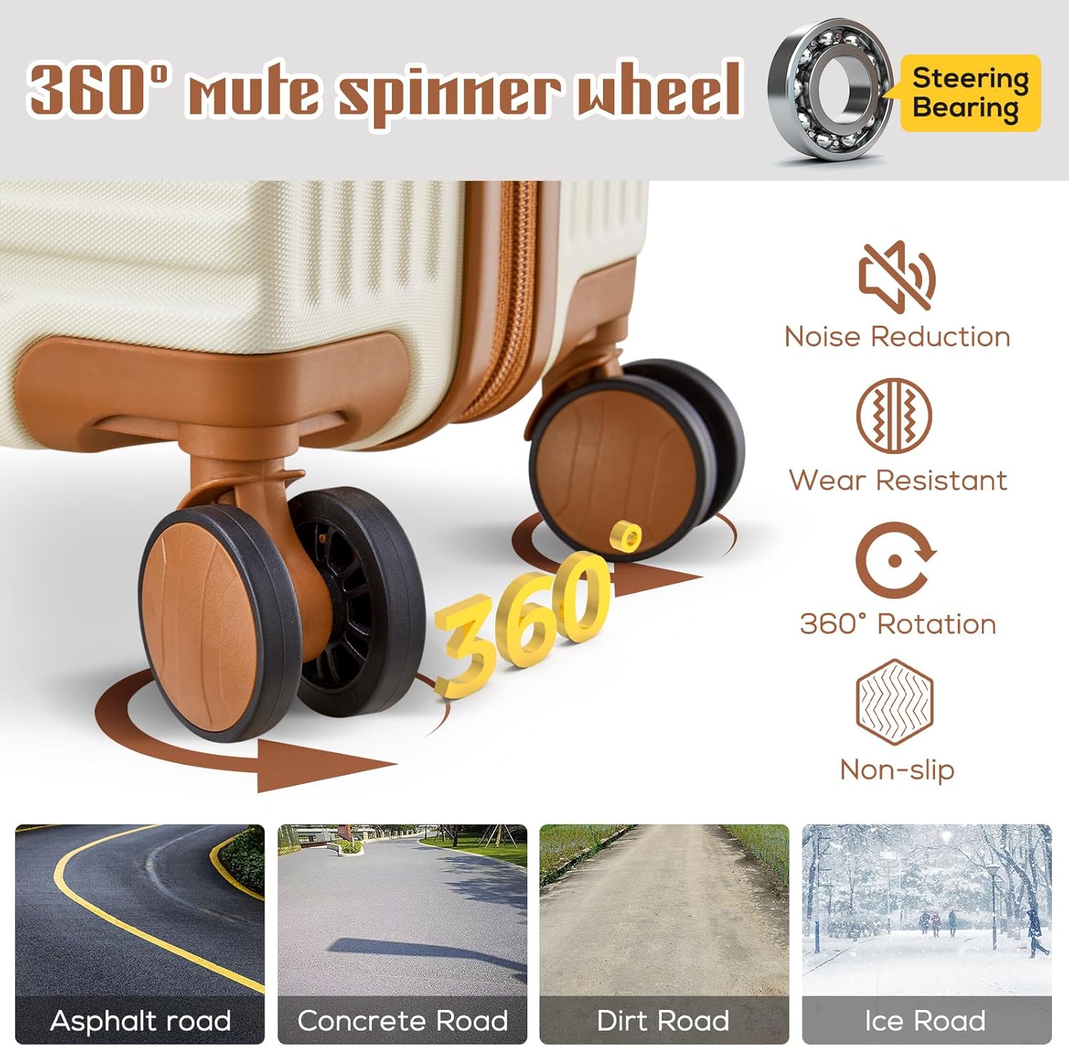 - Quiet Spinner Wheel: Suitcase sets with spinner wheels use high flat and straight shock absorbing universal wheels to make their travel luggage sets quieter and smoother, ensuring 360° free rotation