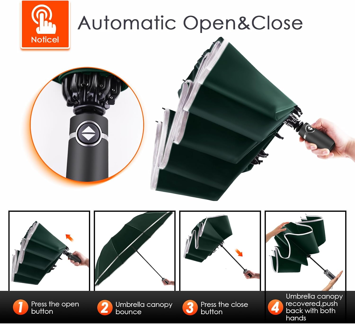 - ☂【Extremely Convenient】Our reverse folding umbrella has a fully automatic system, which is perfect for one-handed operation. Open or close the umbrella with the push of a button. It is easy to carry without taking up much space. Suitable for women and men, suitable for travel and outdoor activities.
