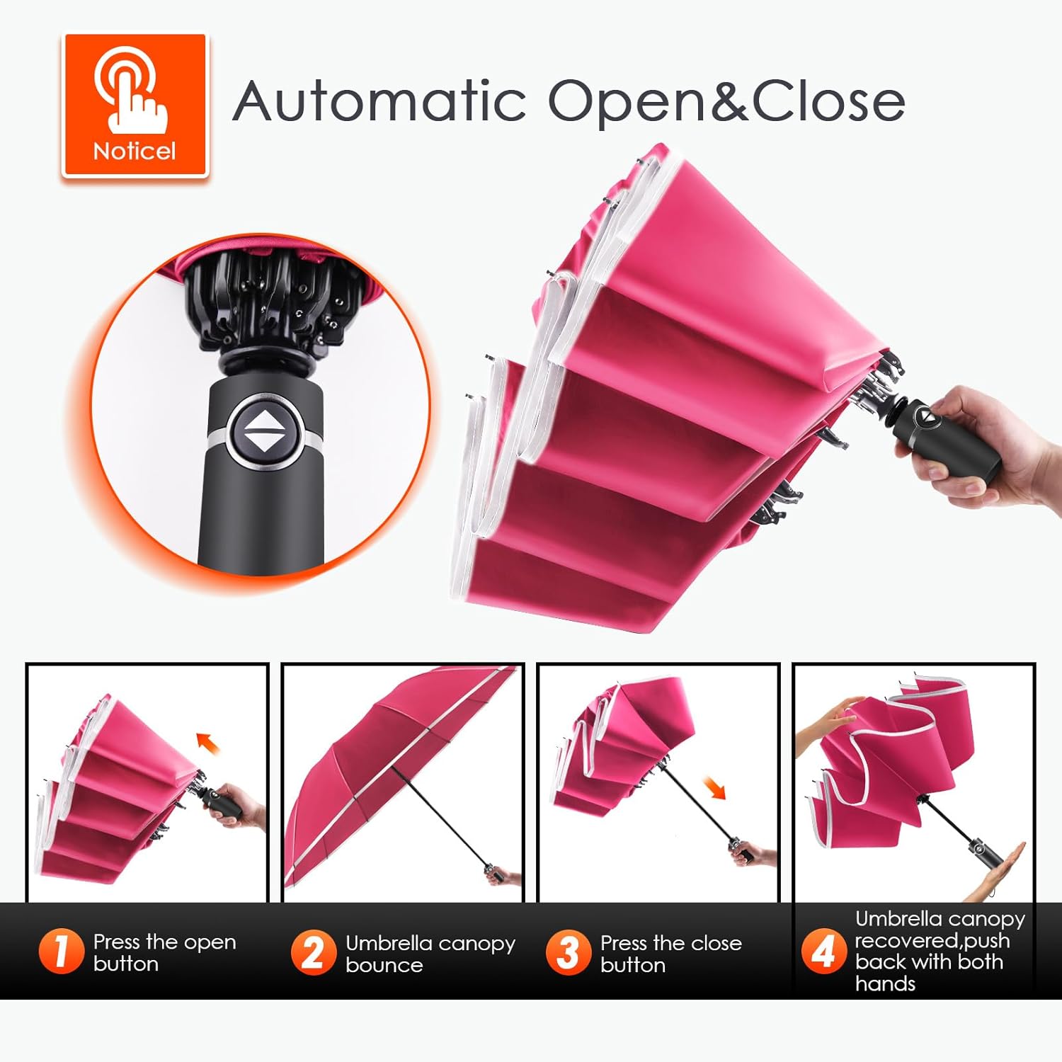 - ☂【Extremely Convenient】Our reverse folding umbrella has a fully automatic system, which is perfect for one-handed operation. Open or close the umbrella with the push of a button. It is easy to carry without taking up much space. Suitable for women and men, suitable for travel and outdoor activities.