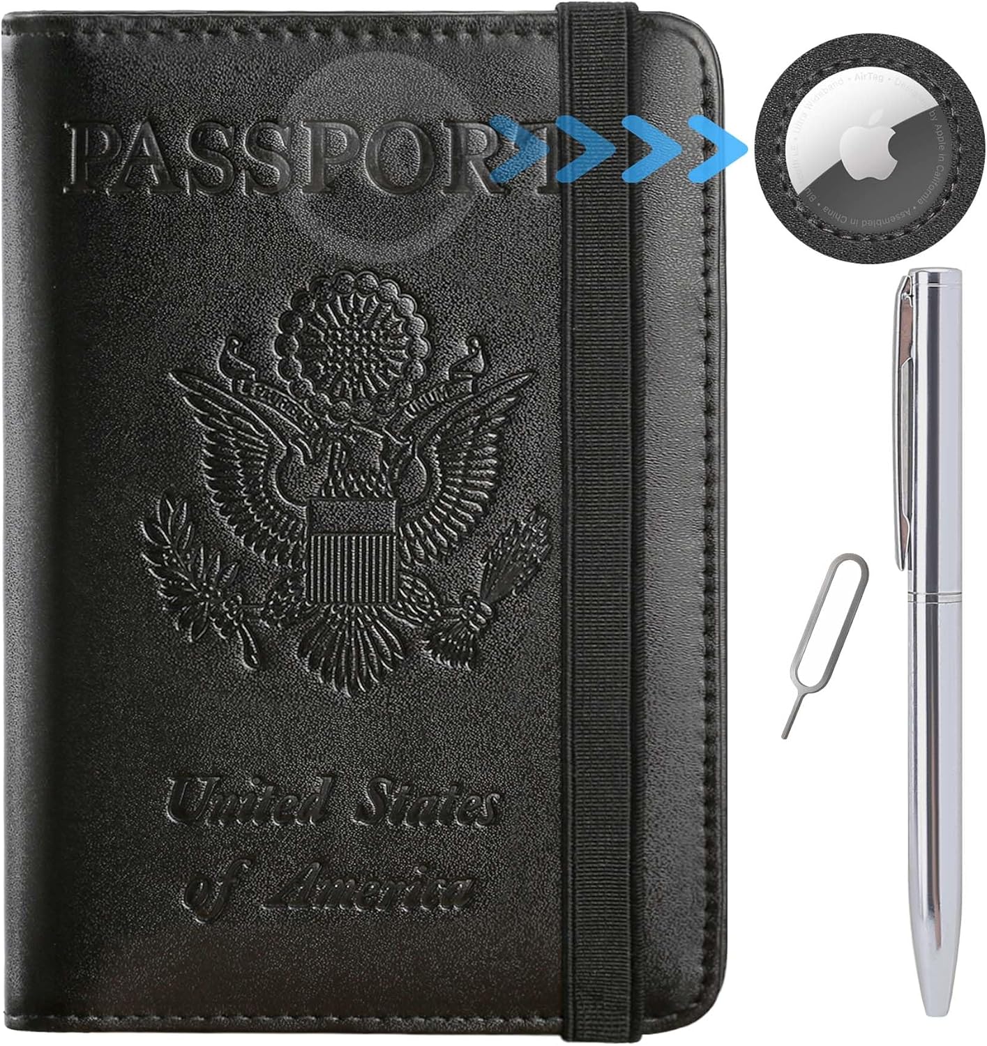 - 【GIFT】 - Every passport case with airtag slot is equipped with a metal pen and a metal pin, which is used to change SIM card on your phone when you travel internationally. And the pen is convenient for you to fill in relevant information when you transit.