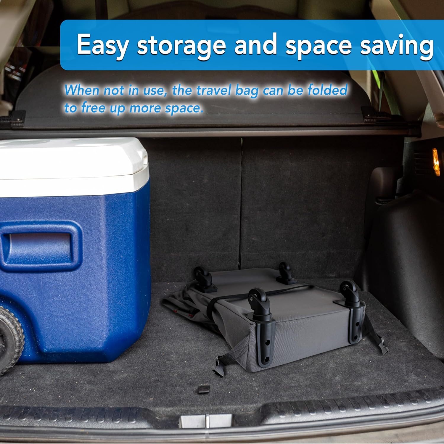 - Car seat travel bag with wheels is designed with four durable 360° wheels for smooth rolling and reduced effort, offering a more efficient and comfortable experience when pulling and pushing the car seat on various surfaces. To optimize the bag's weight and storage space, we have opted for a minimalistic interior design, eliminating the need for additional padding. However, we have ensured that your car seat is fully protected with our use of robust rip-stop fabric and dependable zippers.