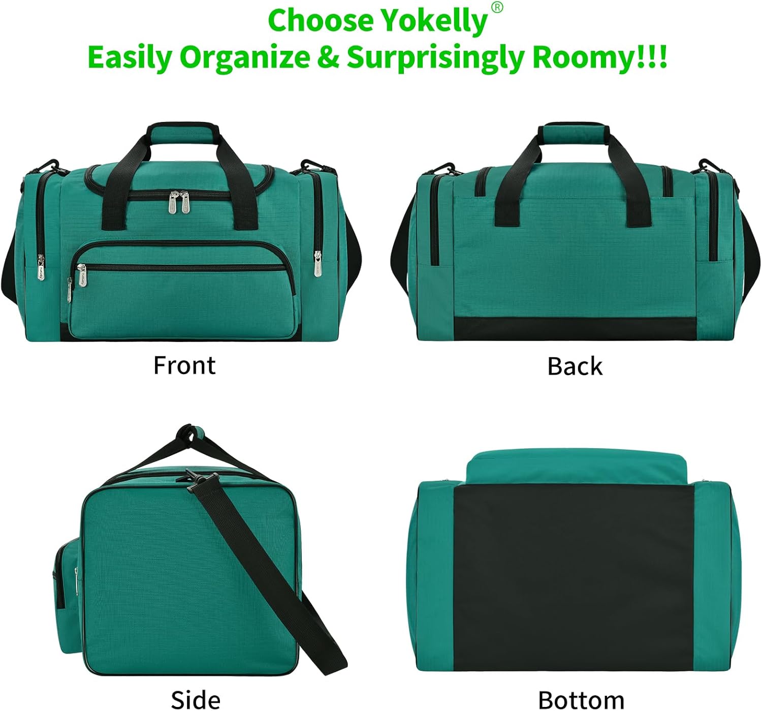 - MULTI POCKETS: Travel duffel bag have up to 6 compartments, 1 main compartment, 2 full size side pockets and 2 extra large front pocket, 1 inner pocket for personal belongings.
