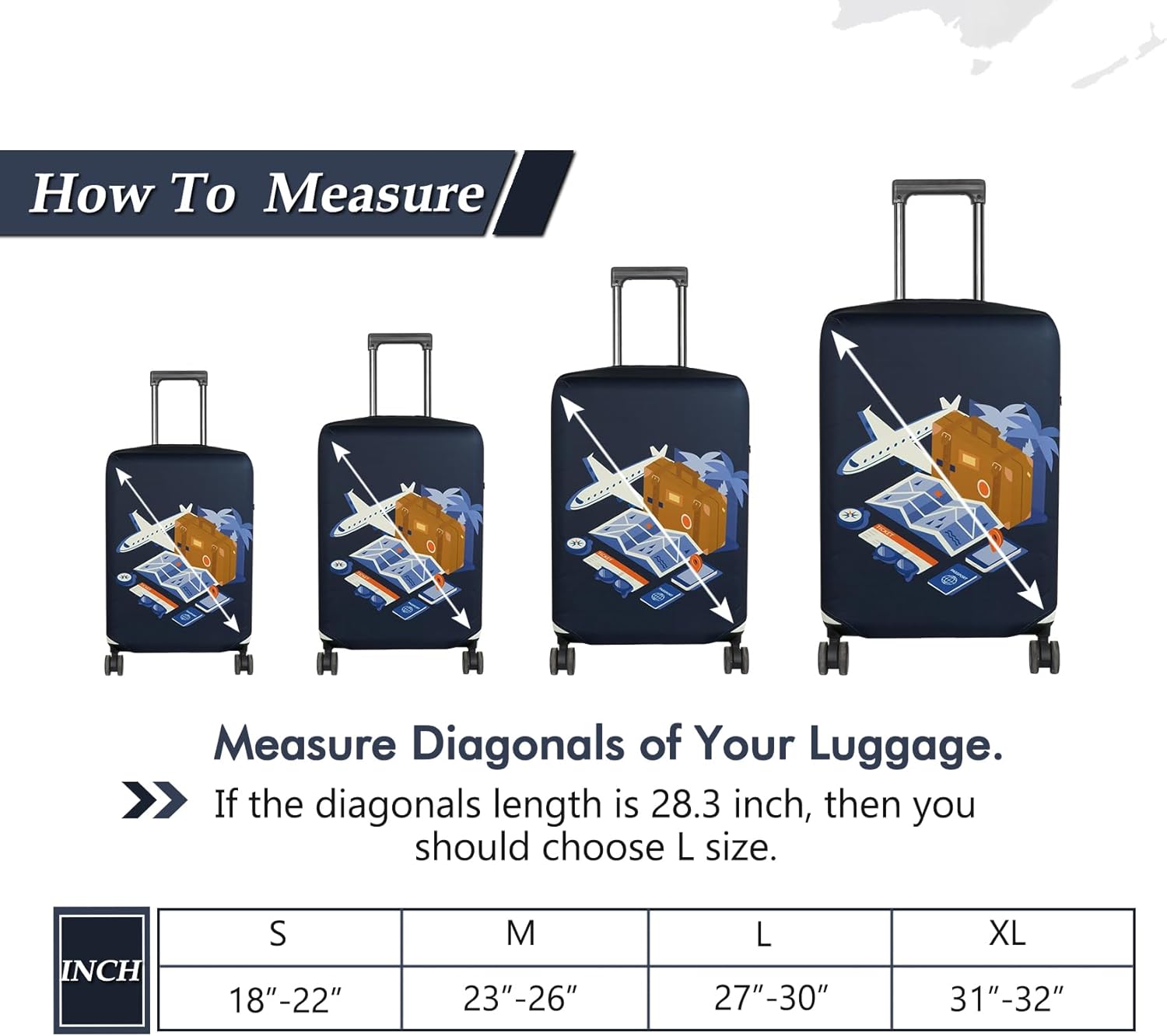 - Four sizes to fit almost any luggage: S: fits 18-22 inch luggage, M: fits 23-26 inch luggage, L: fits 27-30 inch luggage, XL: fits 31-32 inch luggage. Please measure your suitcase before purchasing. Only luggage cover, suitcase not included.