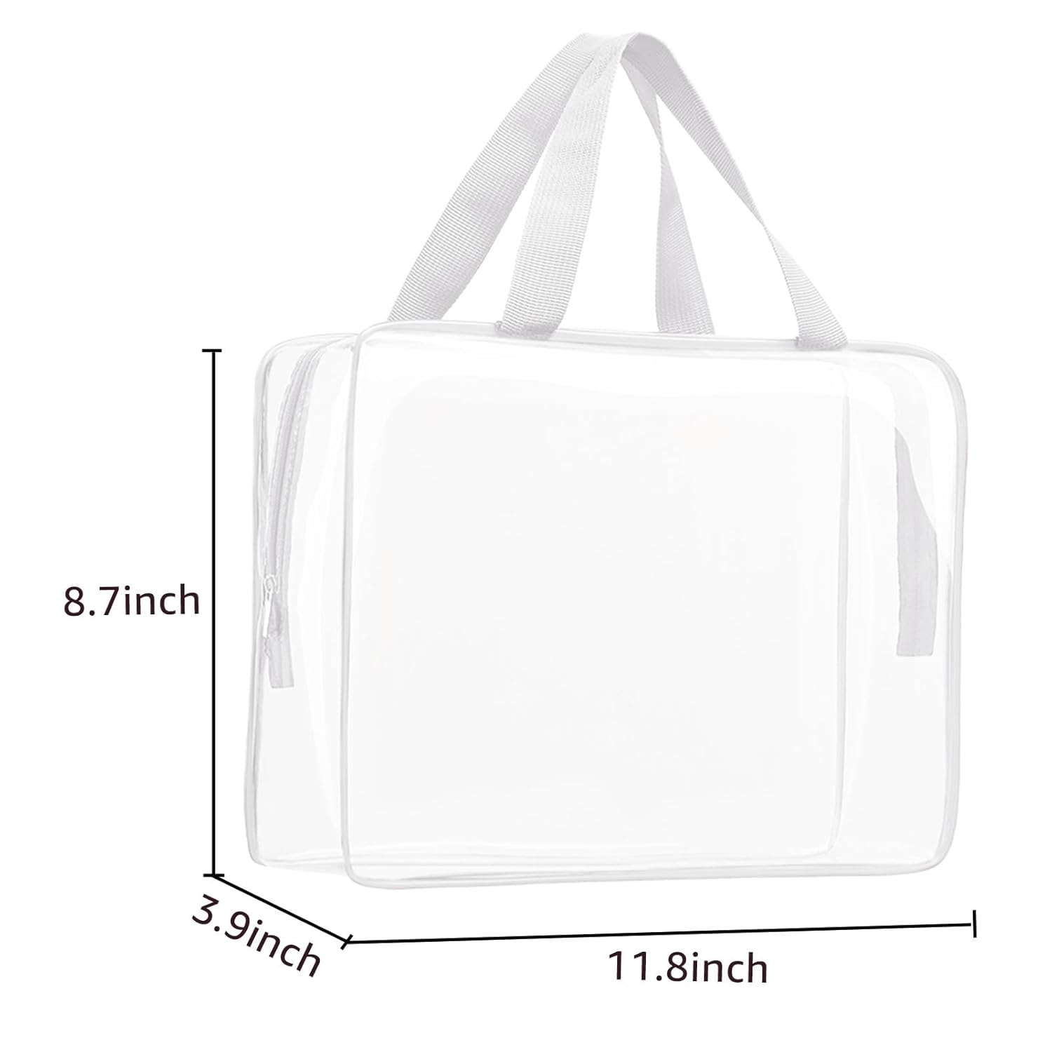 - Improved 0.6mm thickened transparent PVC material, softer and more pliable, durable and reusable; 2 PACKS Large clear toiletry bag (11.8" x 3.9" x 8.7")