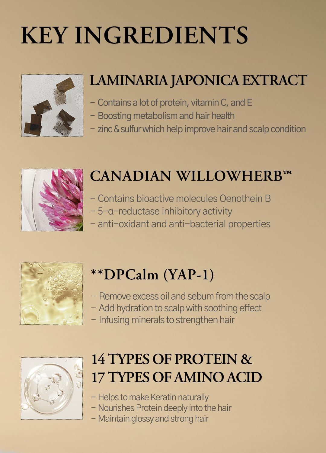 - [THICKENING & STRENGTHENING HAIR]: Laminaria with 14 types of proteins and 17 types of amino acids help to repair and enhance overall hair texture, resulting in stronger, shinier, and healthier hair