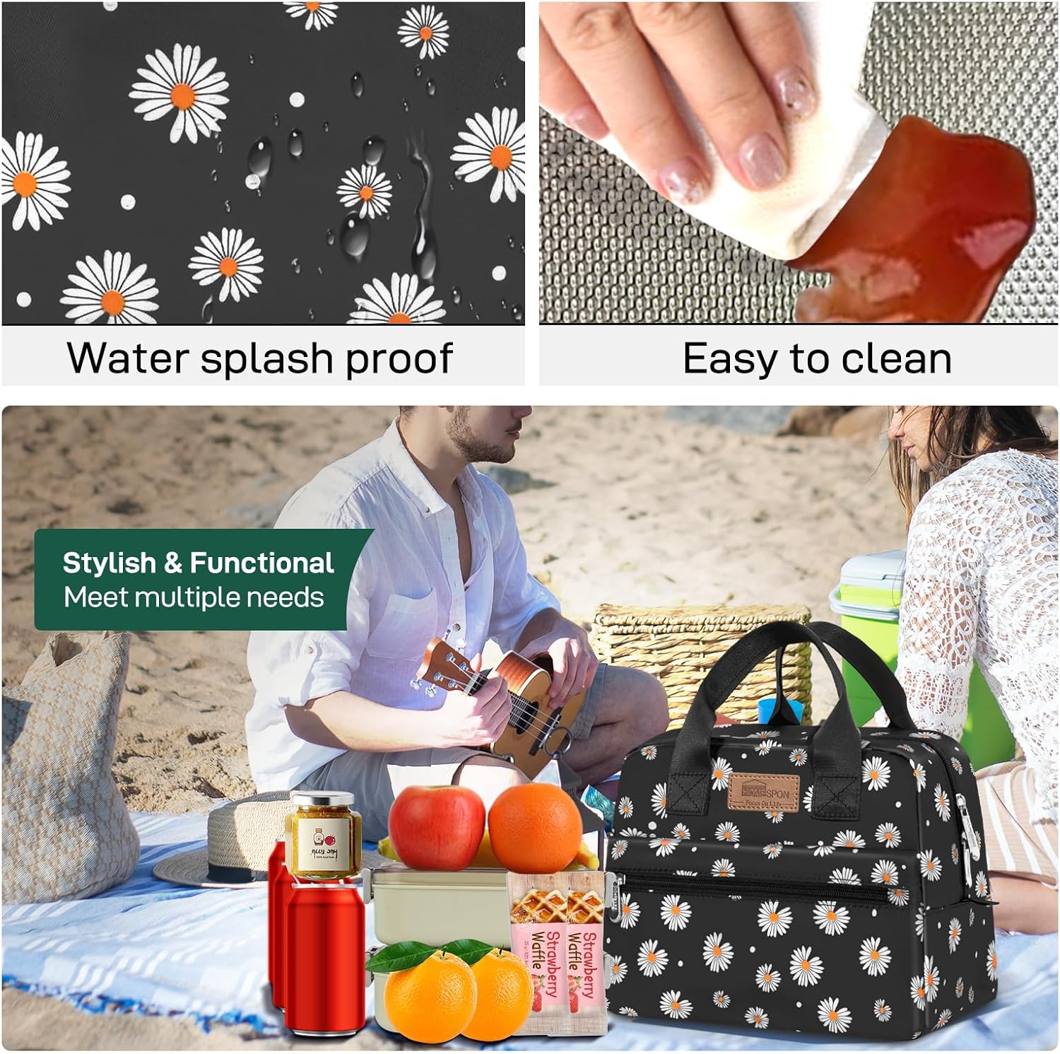 HOMESPON Insulated Lunch Bag for Women Men Lunch Box Cooler Lunch Tote for Work Picnic (Daisy)