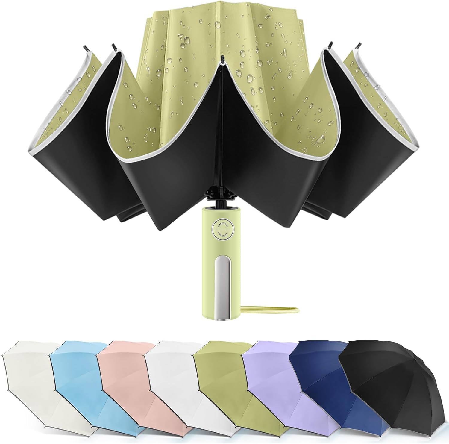 - 【Fully Automatic Inverted Umbrella】 Auto open and close umbrella can be handy for quick entry into a car, building, or tent. You can quickly open or close the travel umbrella at the press of a button. A must-have umbrella for men and women.